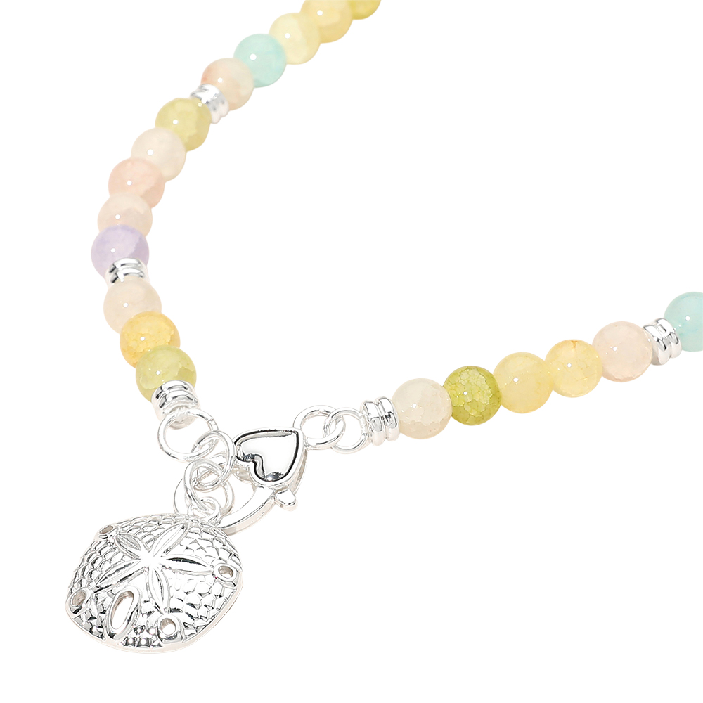 Details • Necklace Size : 16" L • Decor Size : 0.25" L • Pendant Size : 0.8" X 1" • This beaded charm bracelet features smooth round beads paired with a detailed sand dollar charm for a coastal-inspired look. Designed with a comfortable stretch fit, it’s easy to wear alone or layered with other bracelets. A versatile accessory for everyday styling, gifting, beach boutiques, and seasonal collections. Perfect for adding a subtle, playful accent to any jewelry assortment. • Lead and Nickel Compliant