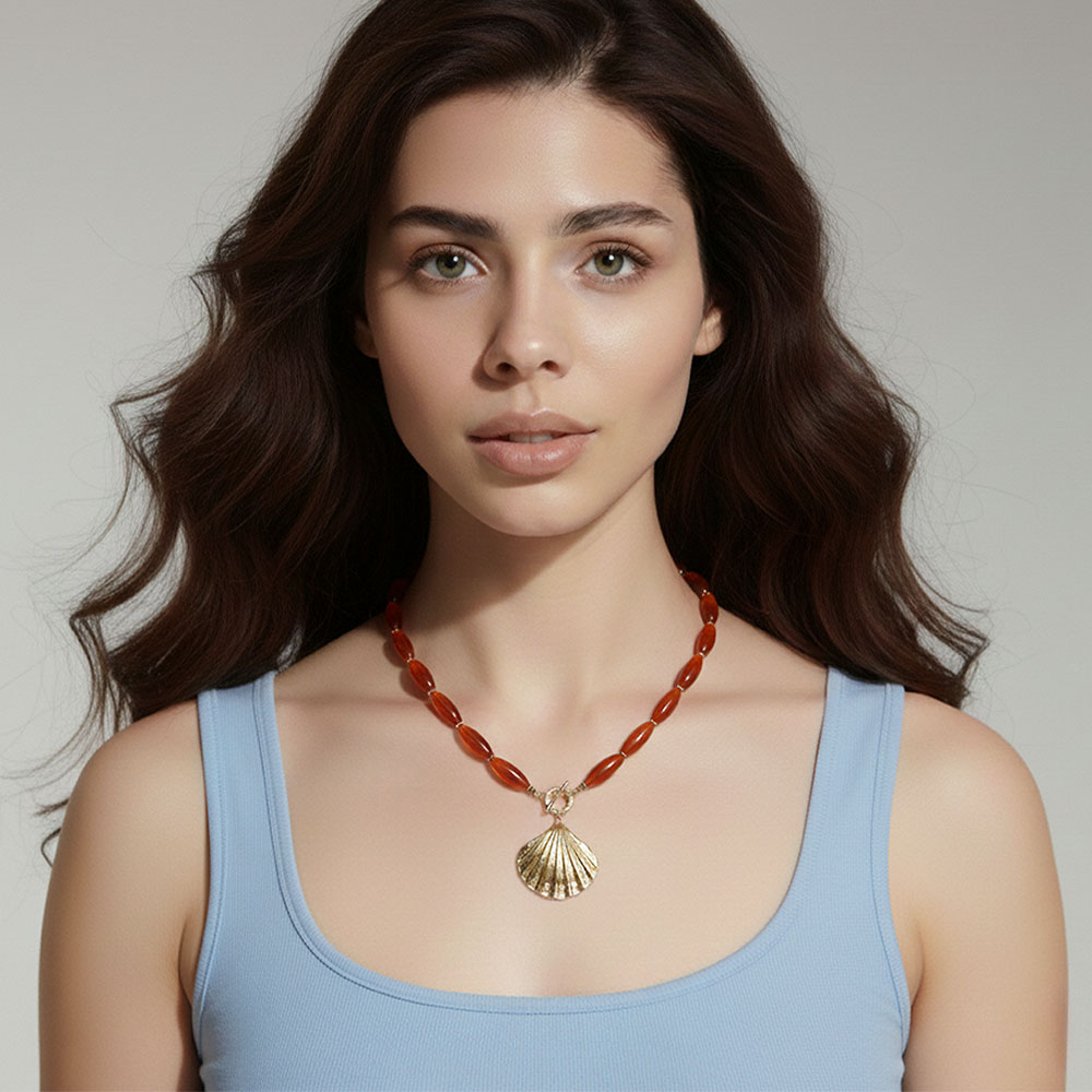 • Elevate your style with this coastal-inspired necklace featuring a beautiful shell pendant. Its unique design combines elegance and relaxed charm, making it the perfect accessory for a variety of outfits. Ideal for adding a touch of sophistication with a natural flair.