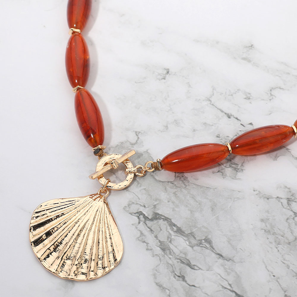 Textured Metal Shell Toggle Pendant Chunky Oval Resin Beaded Statement Necklace