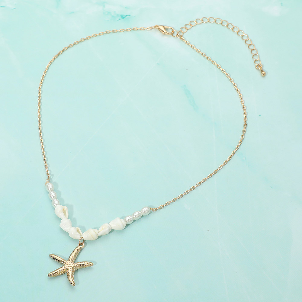 Details • Necklace Size : 16" + 3" L • Pendant Size : 0.8" X 1" • Elegant beaded pendant necklace featuring a starfish charm with a delicate, beach-inspired silhouette. Designed for easy layering or standout solo styling, this necklace brings a relaxed coastal feel to everyday looks, resort collections, and seasonal assortments. A versatile accessory for boutiques seeking ocean-themed jewelry with timeless appeal. • Lead and Nickel Compliant