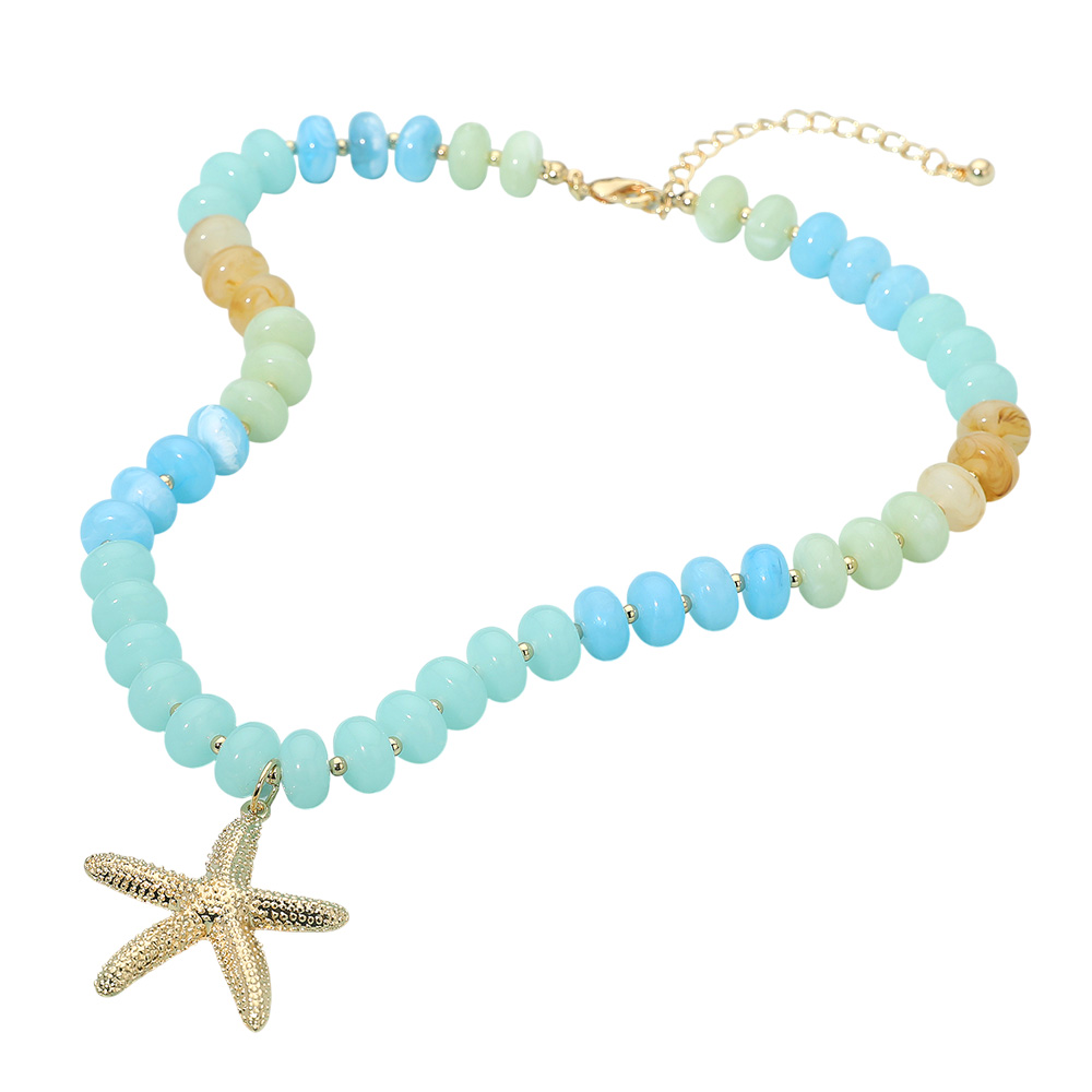 Textured Metal Starfish Pendant Resin Disc Beaded Statement Necklace