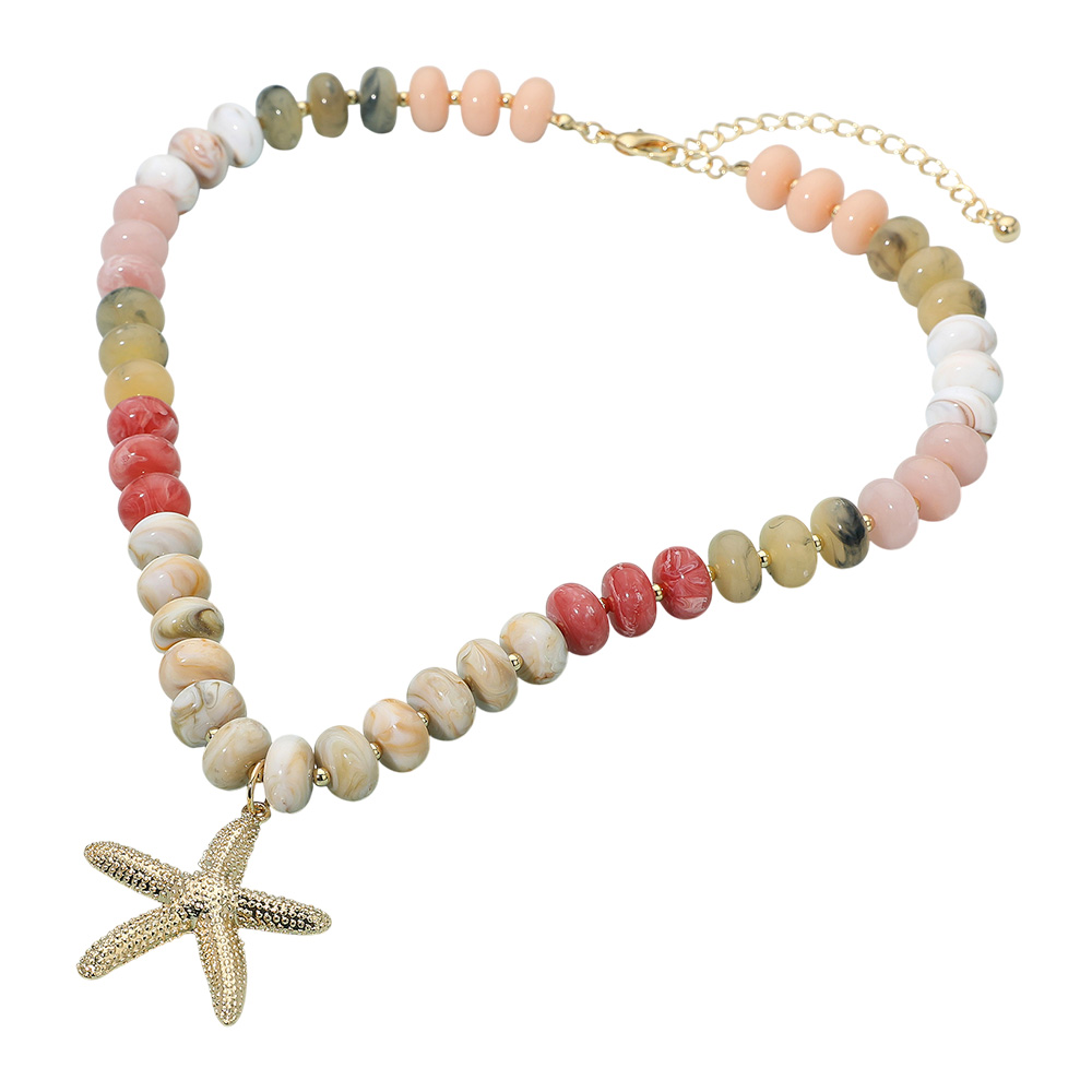 Textured Metal Starfish Pendant Resin Disc Beaded Statement Necklace