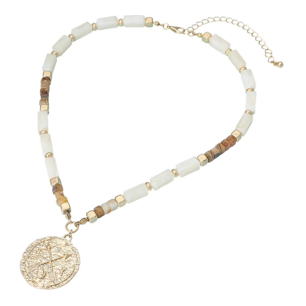 Textured Zodiac Coin Pendant Beaded Necklace Textured Zodiac Coin Pendant Beaded Necklace Textured Zodiac Coin Pendant Beaded Necklace