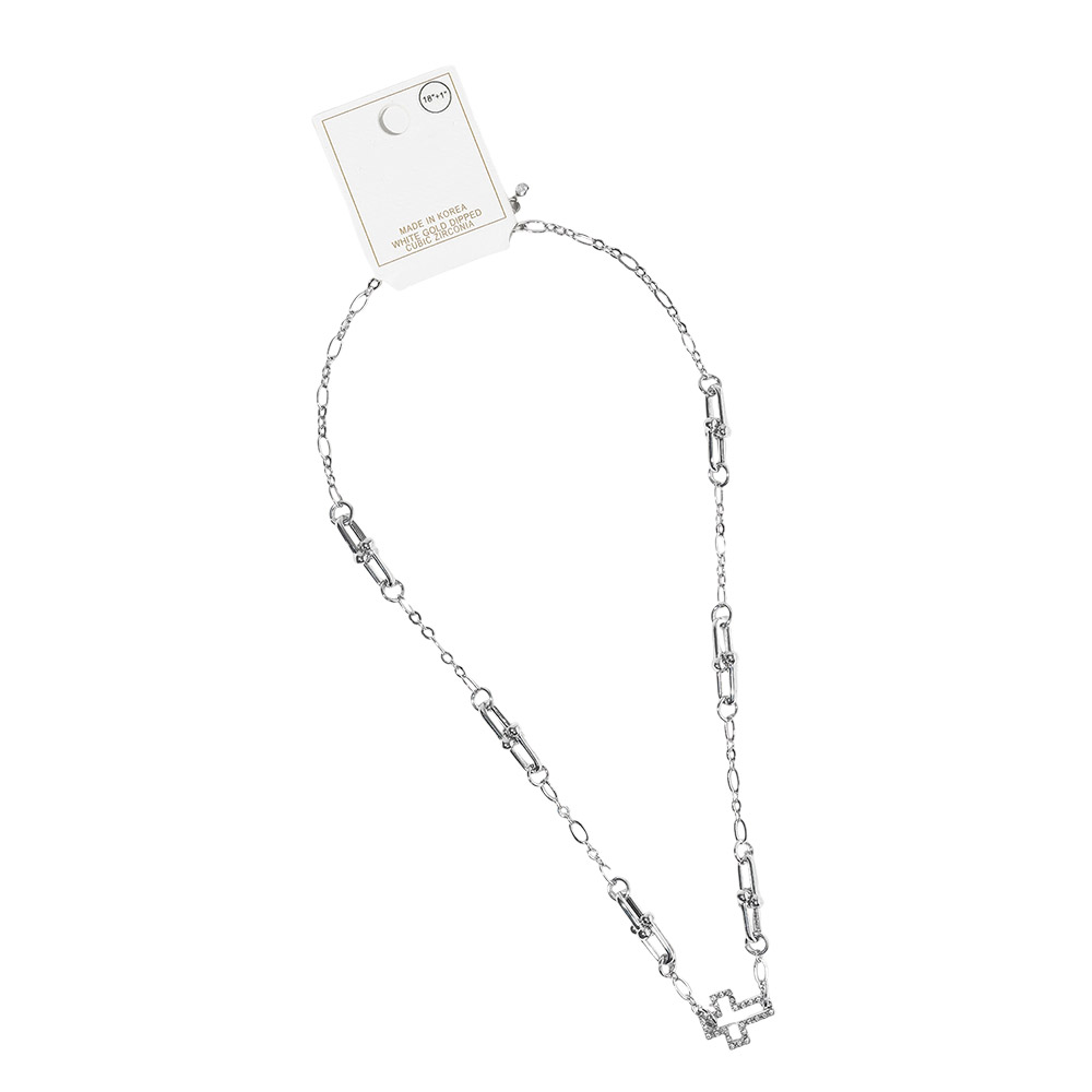 Details • Necklace Size : 18" + 1" L • Pendant Size : 0.5" X 0.7" • This linked cross pendant necklace features a modern chain design paired with a refined cross accent for a meaningful yet fashion-forward look. Ideal for everyday wear or gifting, it layers effortlessly with other necklaces and adds subtle shine and symbolic style to casual or elevated outfits. • CZ Cubic Zirconia • Gold Dipped • Lead and Nickel Compliant • Made In Korea