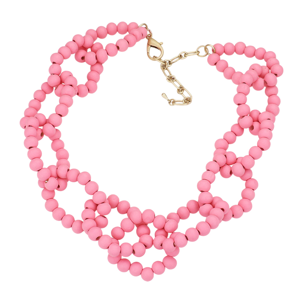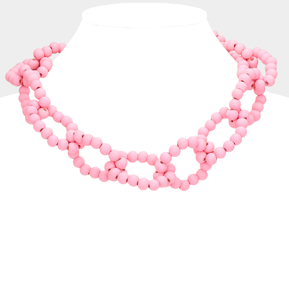 Chunky Pearl Wooden Cube Metal Pebble Accent Multi Disc Beaded Layered Toggle Statement Necklace