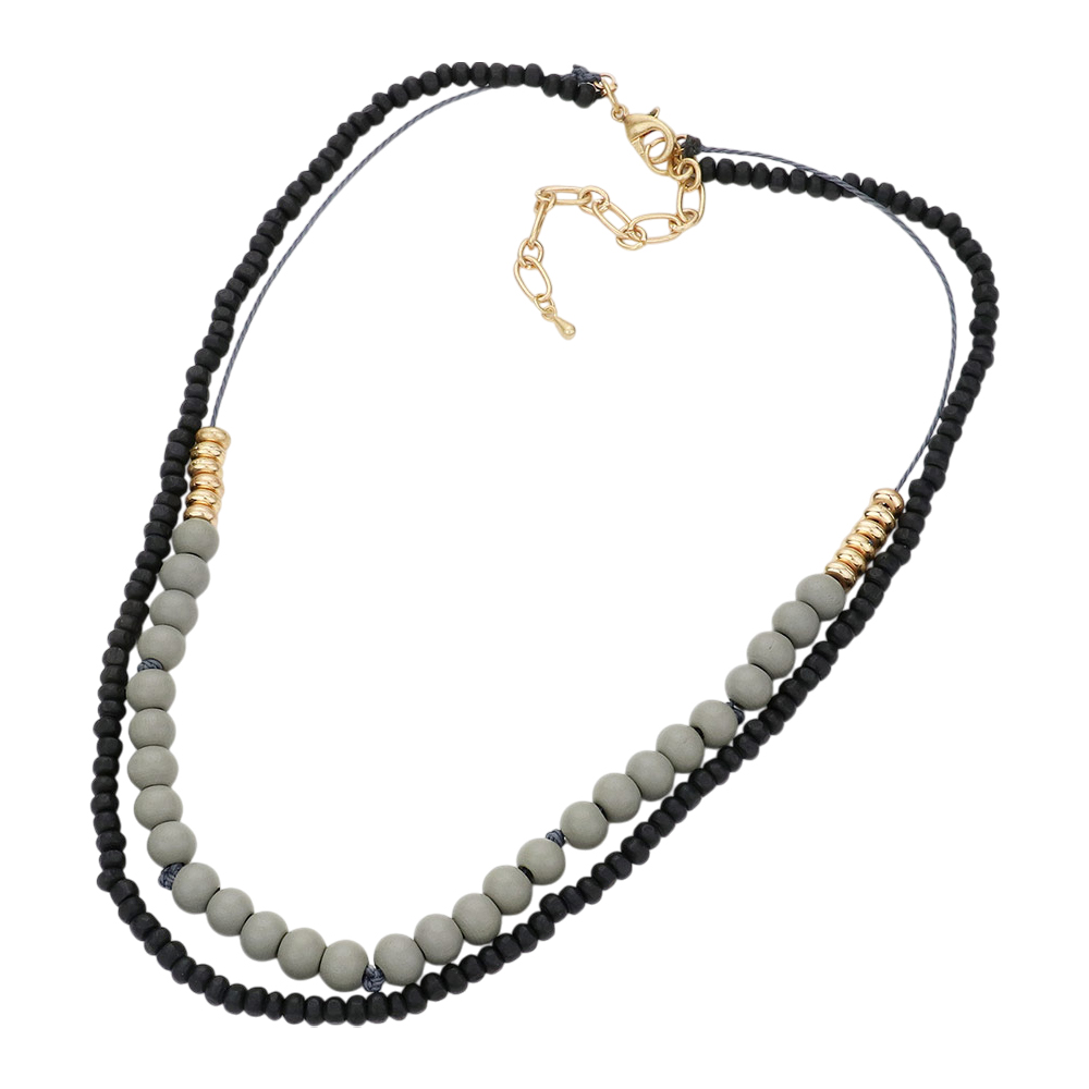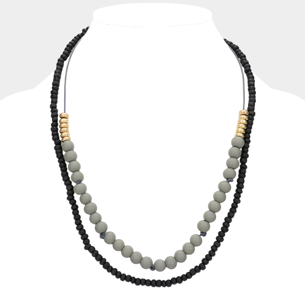Chunky Marbled Resin Wood Beaded Statement Necklace