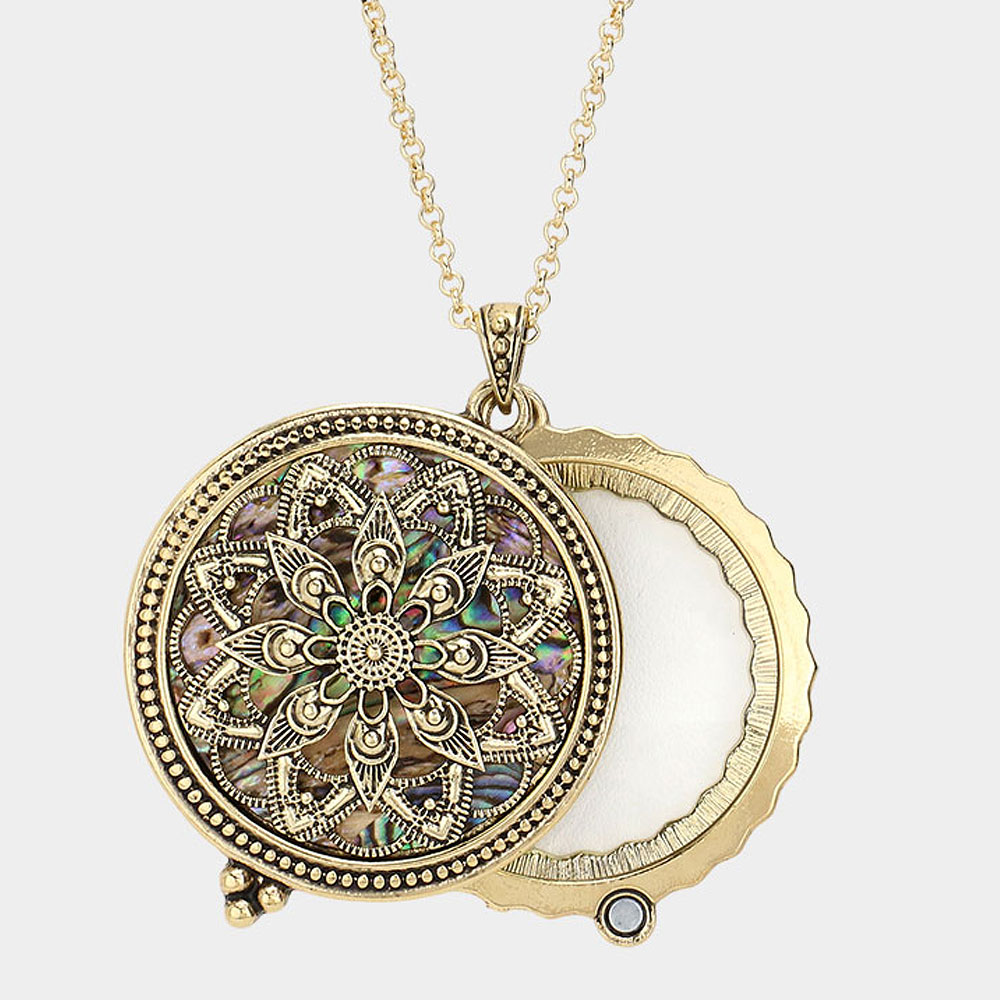 Antique Patterned Magnifying Glass Locket Pendant Long Necklace