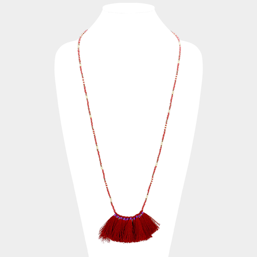Beaded Tassel Fringe Long Necklace