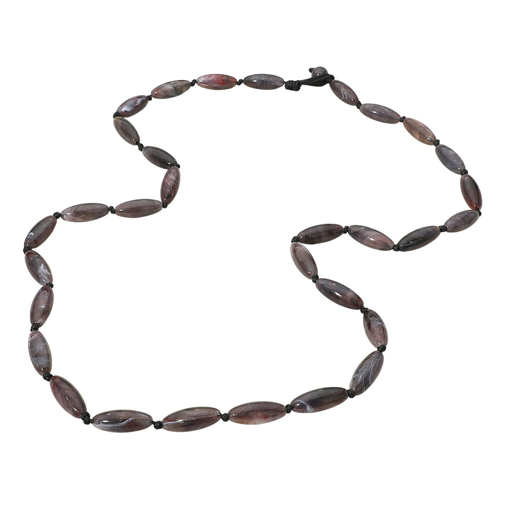 Details • Necklace Size : 46" L • Adjustable • Elegant long beaded necklace featuring smooth oval beads with a polished finish. Designed with an adjustable length for versatile styling, this chic statement piece adds a touch of sophistication and contemporary flair to both casual and dressy looks. • Lead and Nickel Compliant