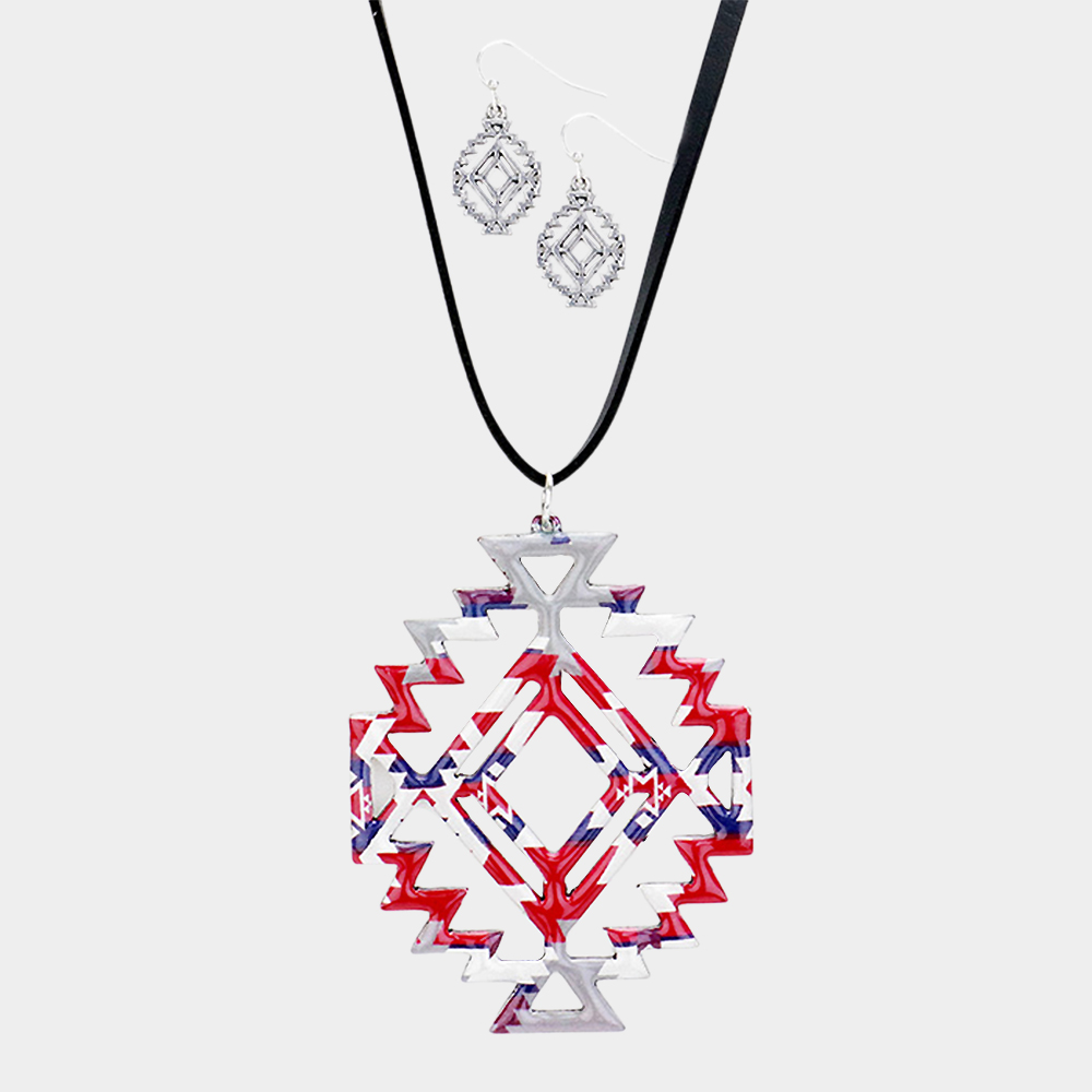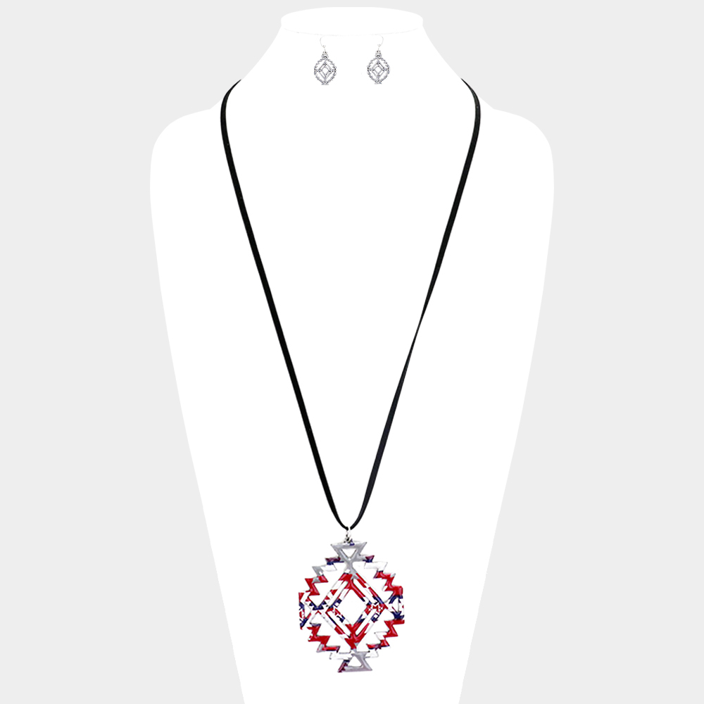 Enamel Aztec Pattern Pendant Leather Long Necklace