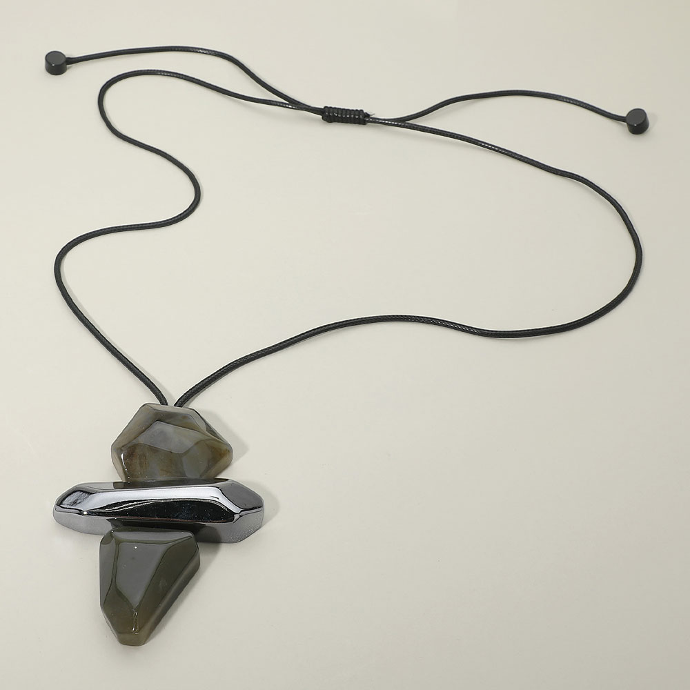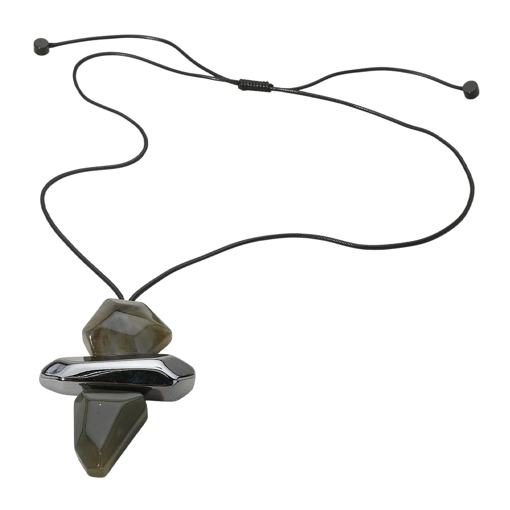 • This adjustable necklace features a striking geometric stacked pendant with a modern, sculptural design. Created to make a statement, it adds depth and visual interest to everyday or elevated looks, making it an eye-catching choice for boutique displays and trend-driven jewelry collections.