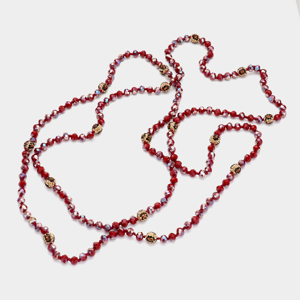 Leopard Pattern Shamballa Ball Accented Faceted Bead Long Necklace