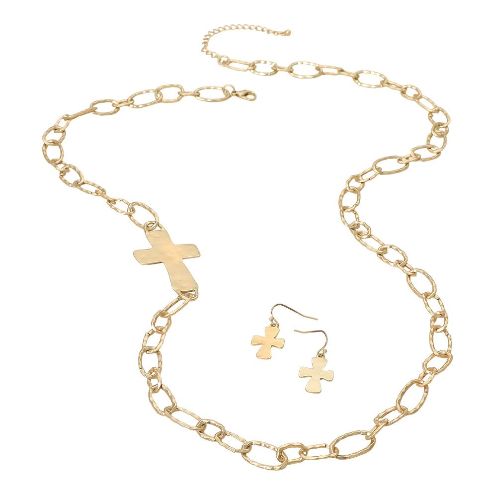 • Coordinated necklace and earring set featuring bold cross accents and an elongated chain silhouette for meaningful, statement-ready style. Designed to elevate everyday outfits and special occasions, this set offers a balanced blend of symbolism and modern appeal for boutique collections and gifting.