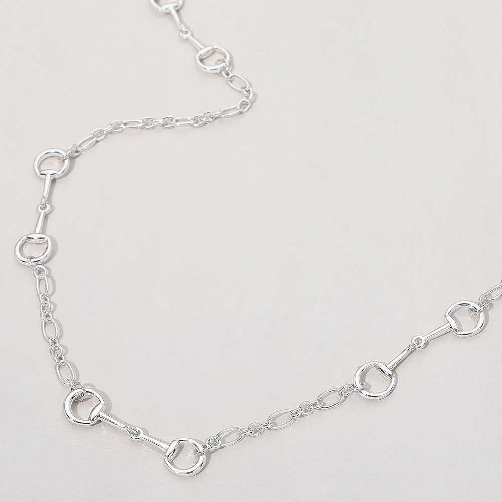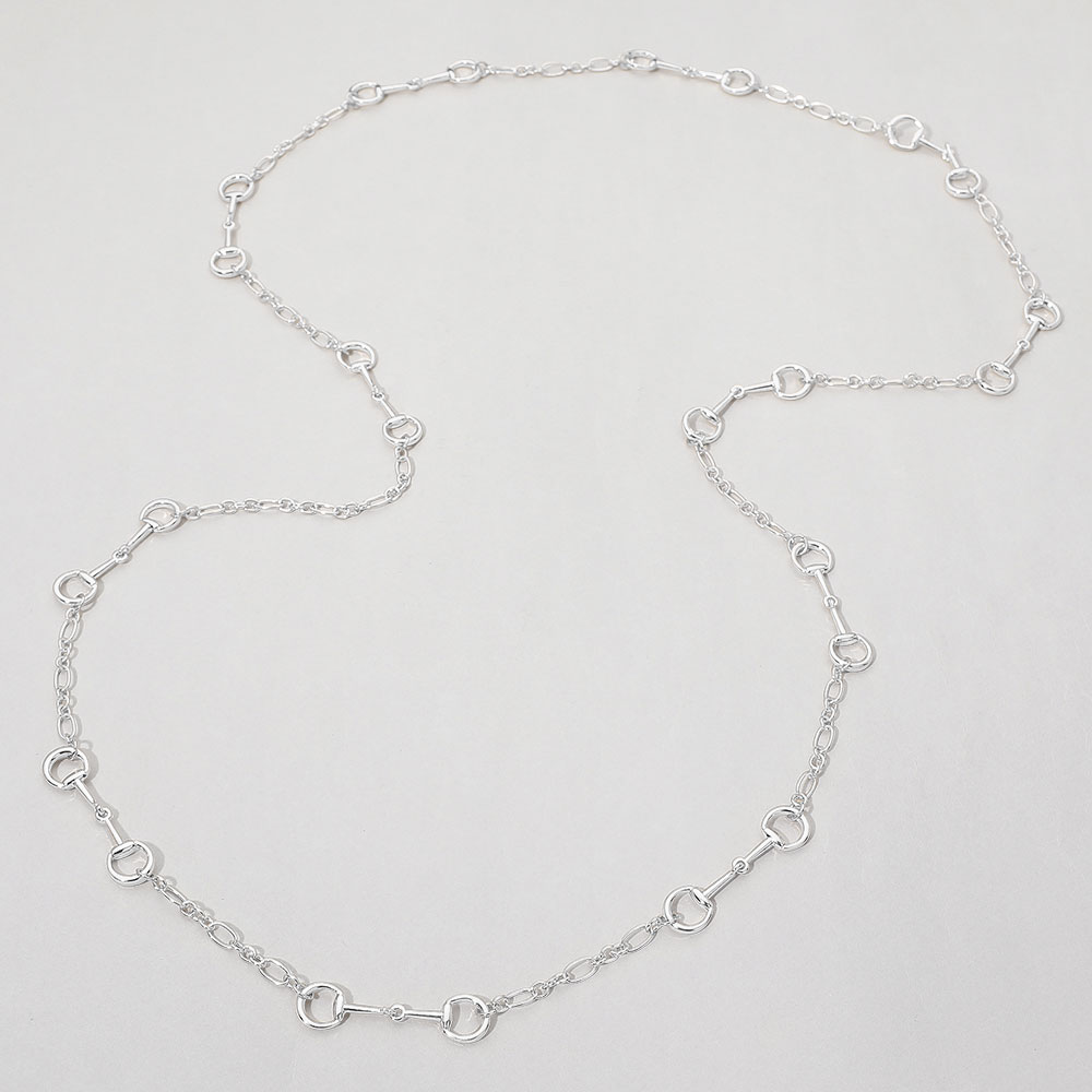 Details • Necklace Size : 38" L • Decor Size : 0.4" L • Sleek horsebit link chain necklace featuring a refined pattern that adds subtle statement appeal to any outfit. Designed for easy layering or solo wear, its adjustable length offers a comfortable fit for daily styling, special occasions, and effortless gifting across all seasons. • Lead and Nickel Compliant
