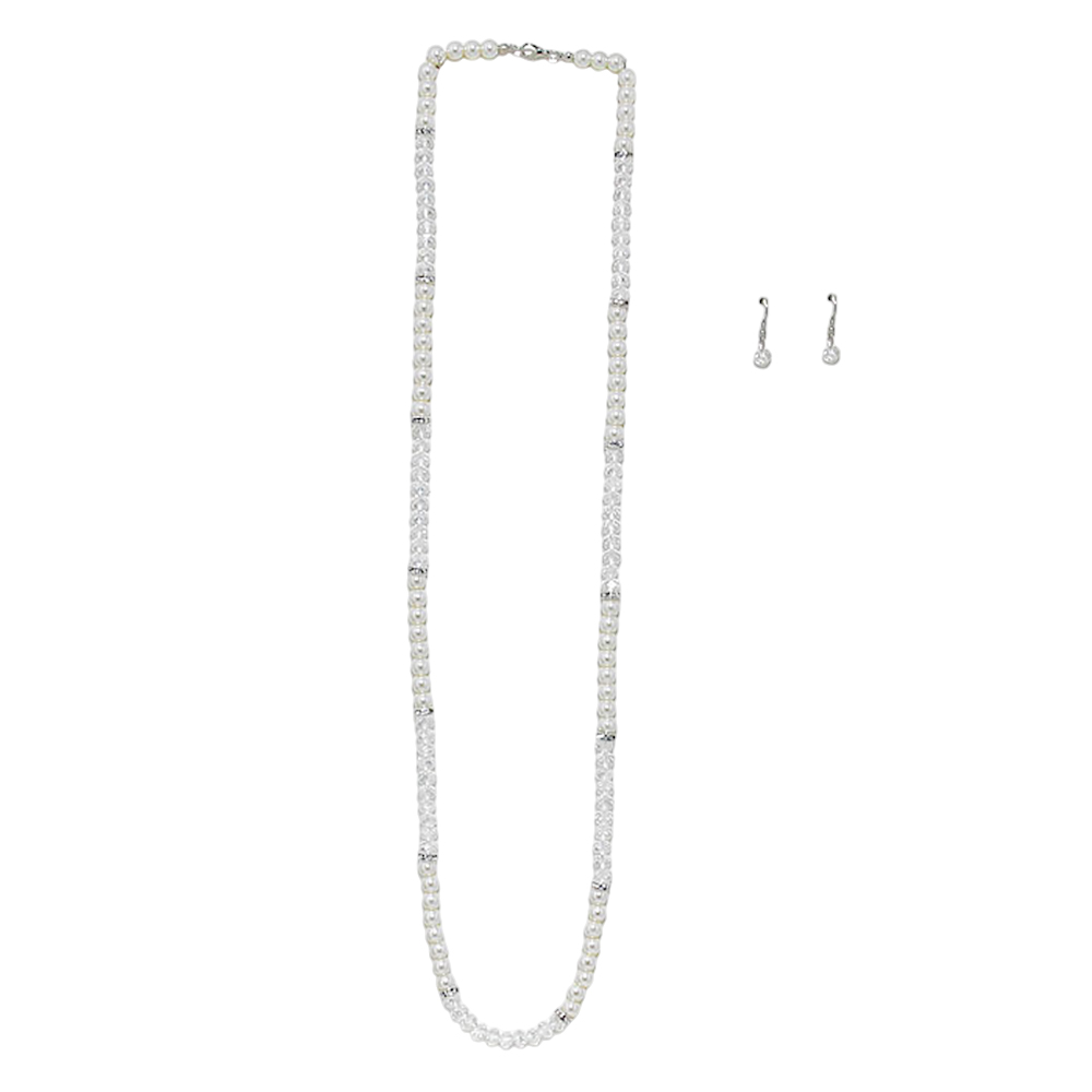 Chunky Pearl Resin Metal Beaded Fabric Statement Necklace