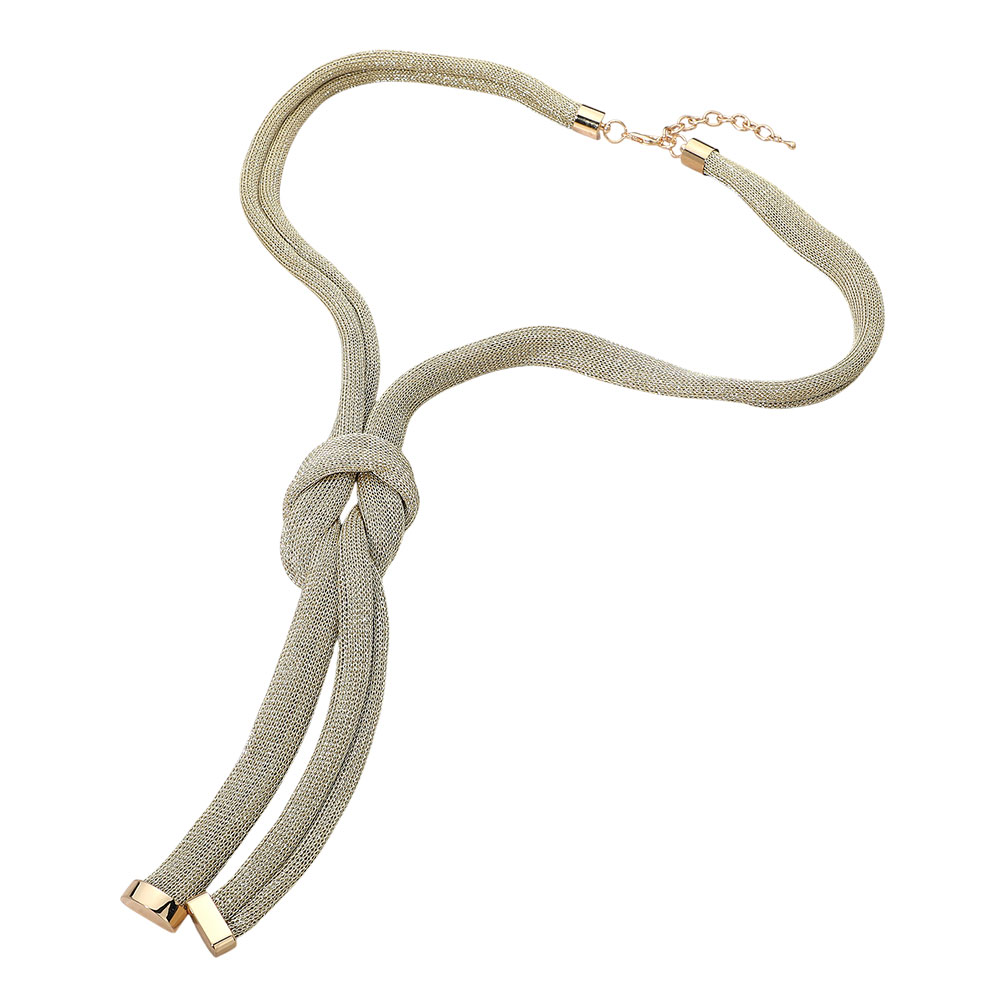 Modern Knot Accent Mesh Long Statement Necklace Modern Knot Accent Mesh Long Statement Necklace