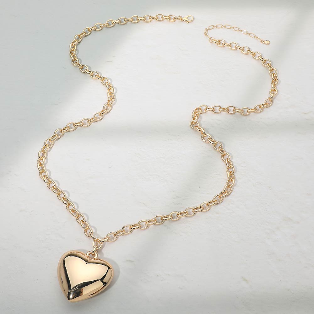 Details • Necklace Size : 32.5" + 3.25" L • Pendant Size : 1.7" X 1.75" • Charming heart pendant necklace designed with a smooth, polished charm suspended from a classic link chain. This timeless necklace offers a clean, minimalist look that layers beautifully or stands out on its own. Perfect for everyday wear, gifting, or special occasions, it adds a meaningful touch of love and elegance to any jewelry collection. • Lead and Nickel Compliant