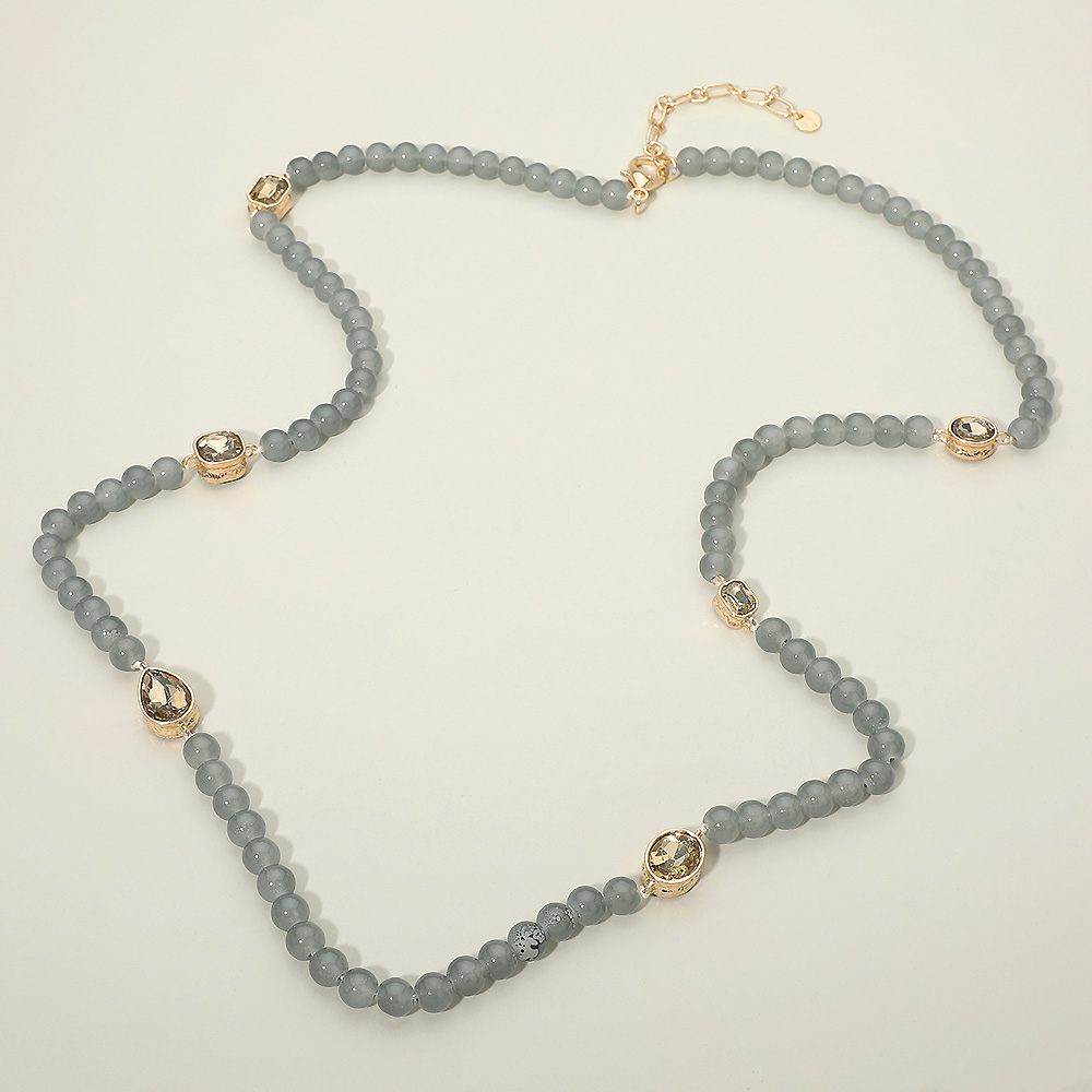 • Elegant station-style long necklace featuring evenly spaced bead accents and refined decorative stations for added visual interest. Designed for effortless layering or standalone wear, this versatile piece offers a balanced, modern look that transitions easily from casual to dressy styling, making it an ideal choice for everyday accessory collections and boutique assortments.