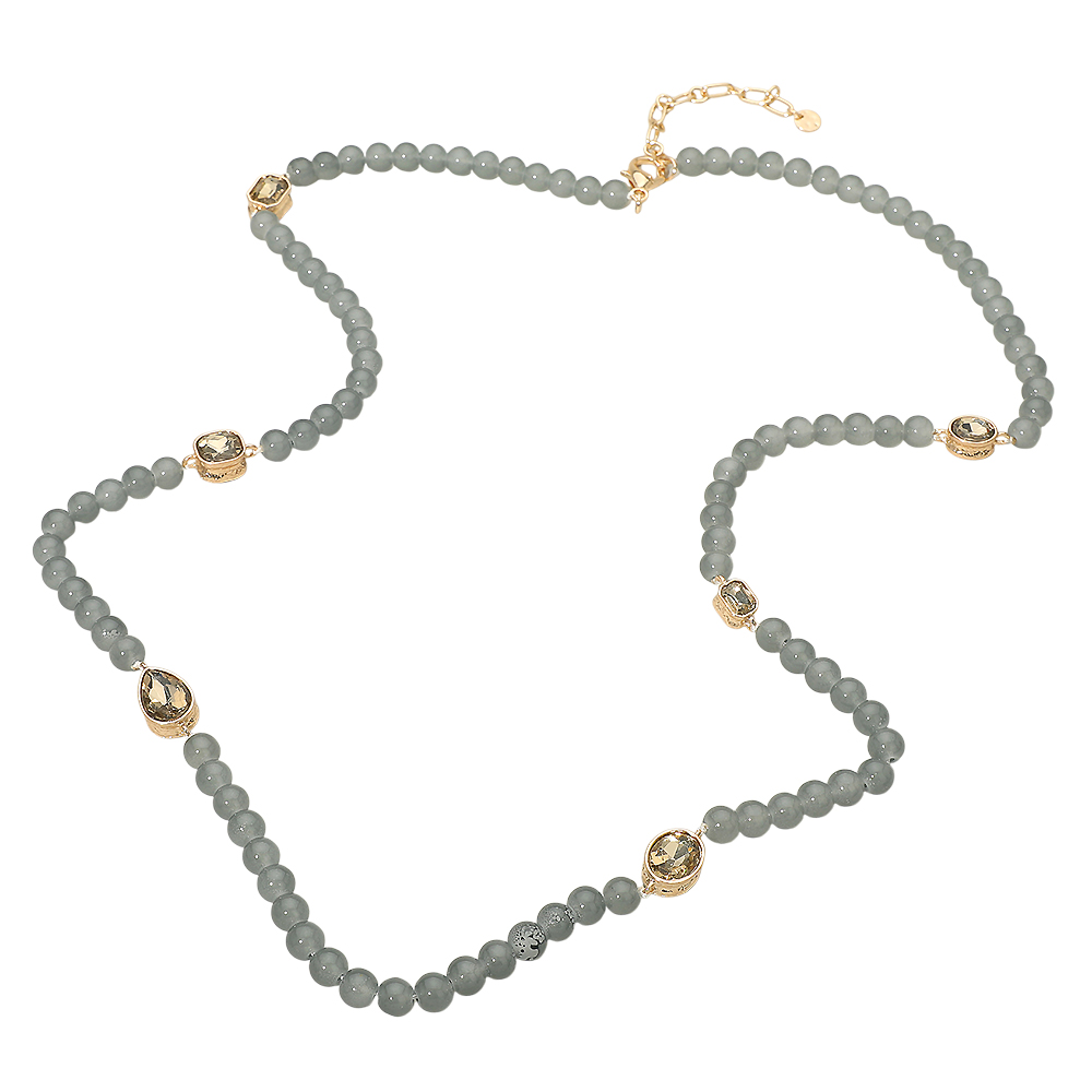 Stone Cluster Station Beaded Long Necklace