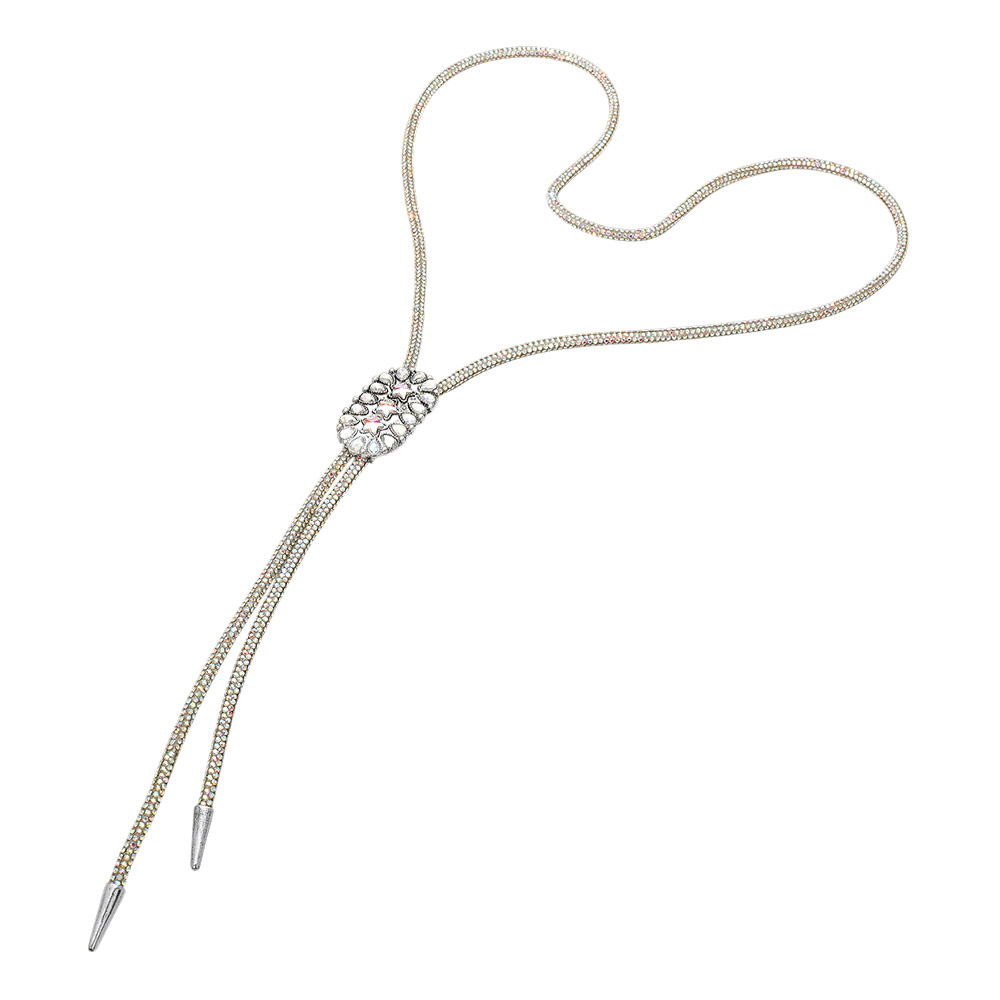 • This bolo pendant necklace features an adjustable slide design with a decorative centerpiece and elegant drop ends, offering a flexible fit and eye-catching movement. Ideal for western-inspired looks, statement layering, or boutique gifting, it delivers standout style while remaining easy to wear for everyday outfits or special occasions.