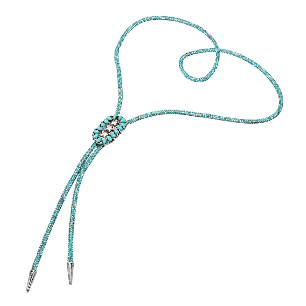 • This bolo pendant necklace features an adjustable slide design with a decorative centerpiece and elegant drop ends, offering a flexible fit and eye-catching movement. Ideal for western-inspired looks, statement layering, or boutique gifting, it delivers standout style while remaining easy to wear for everyday outfits or special occasions.