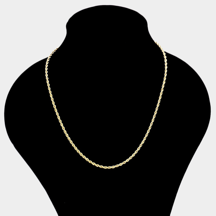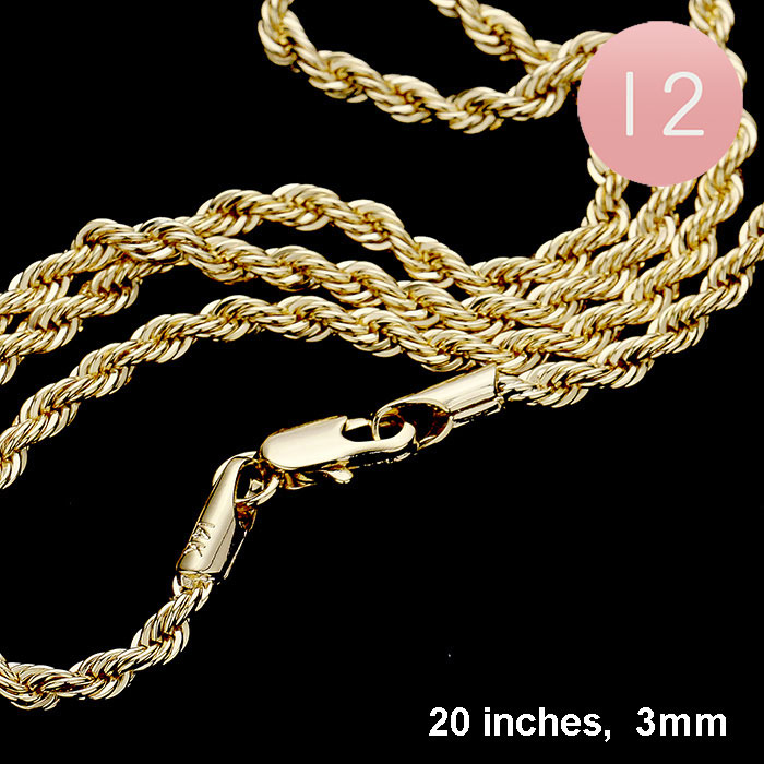 12PCS - 20 INCH, 3mm Gold Plated Rope Chain Metal Necklaces