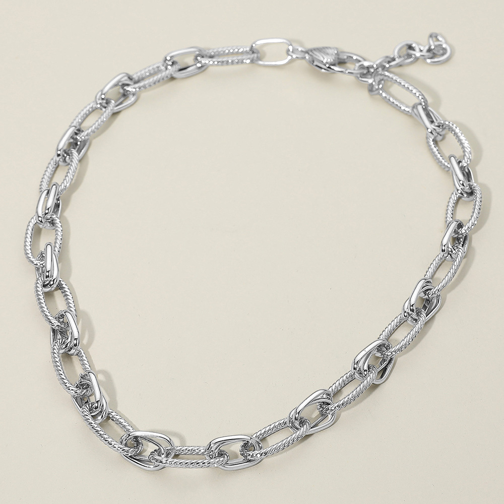 Details • Necklace Size : 17.75" + 2" L • Decor Size : 0.4" L • This rope and link chain necklace features a striking blend of smooth and textured links for a refined, versatile style. The secure clasp provides comfort, making it ideal for layering or wearing solo as an elegant statement piece for any occasion. • Gold Dipped