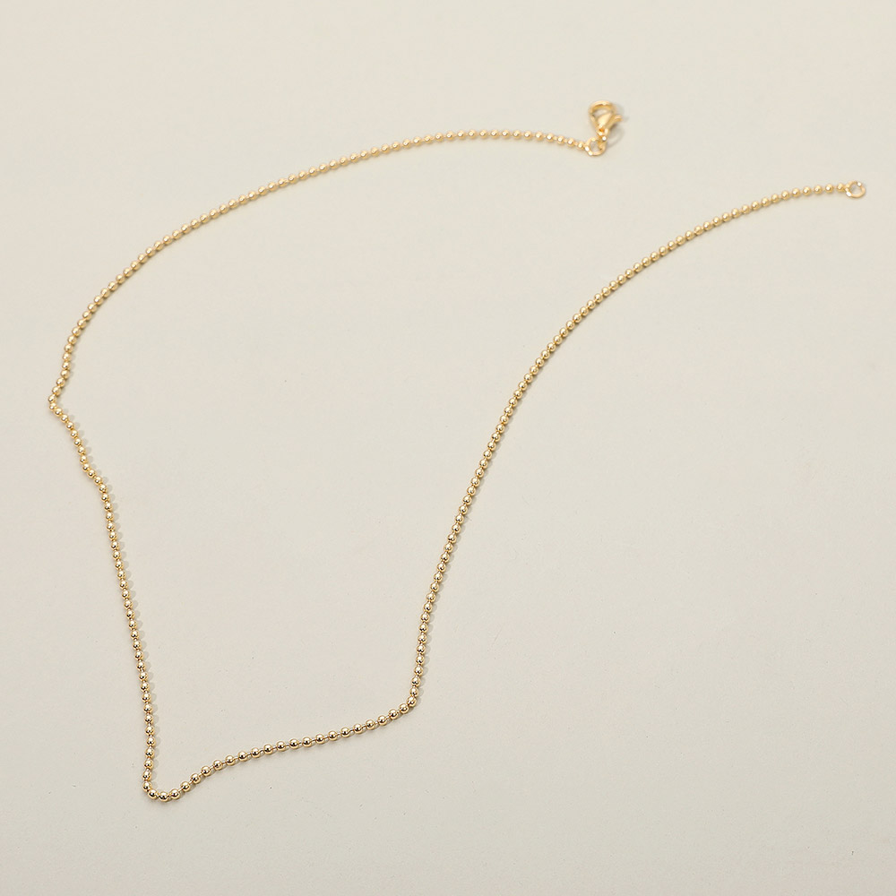 Details • Necklace Size : 16" L • Decor Size : 0.1" L (2mm) • Elegant bead chain necklace featuring small, polished round links that create a smooth and refined texture. A timeless minimalist piece perfect for layering or wearing solo, adding effortless shine to both casual and dressy looks. • Lead and Nickel Compliant • Gold Filled • Made In Brazil