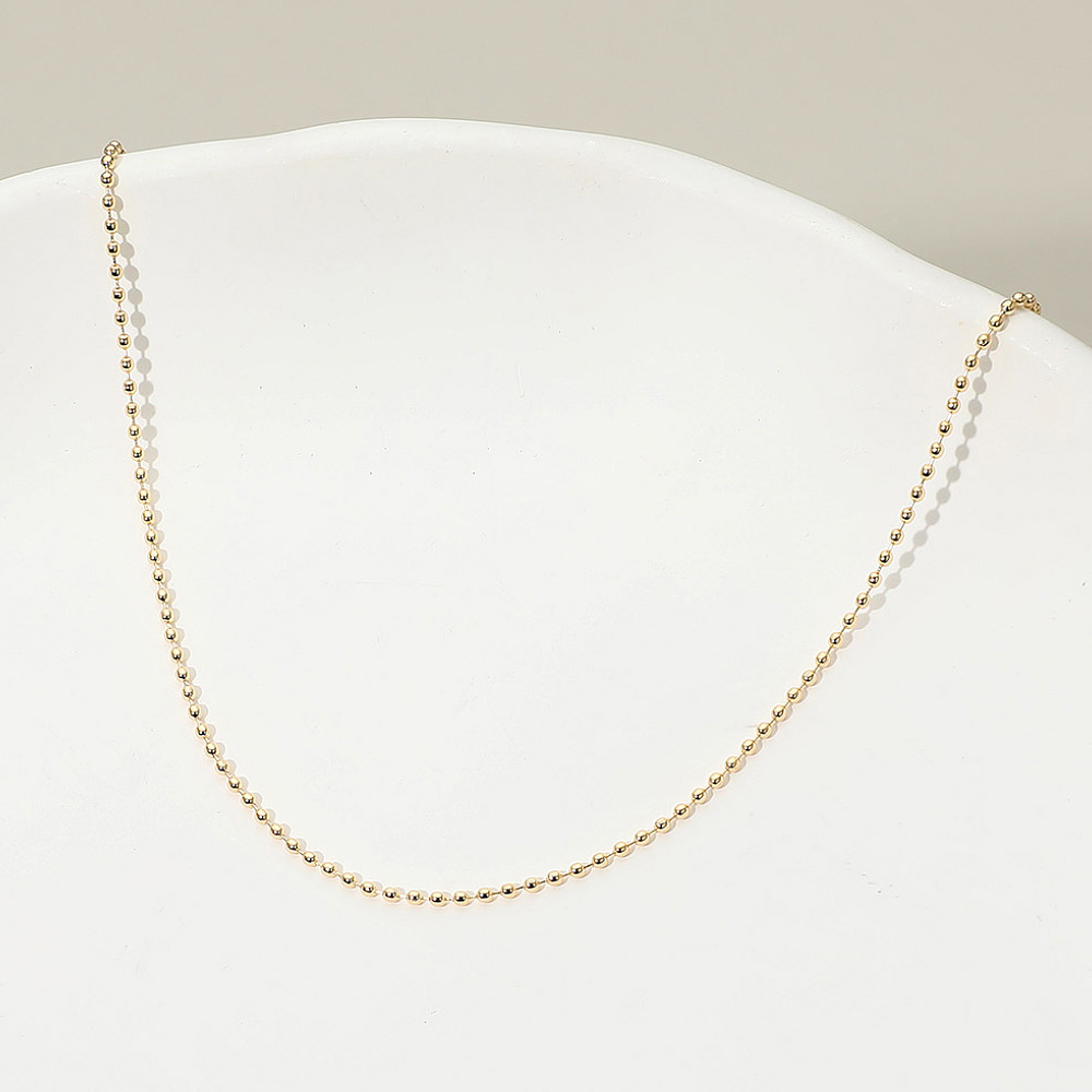 • Elegant bead chain necklace featuring small, polished round links that create a smooth and refined texture. A timeless minimalist piece perfect for layering or wearing solo, adding effortless shine to both casual and dressy looks.