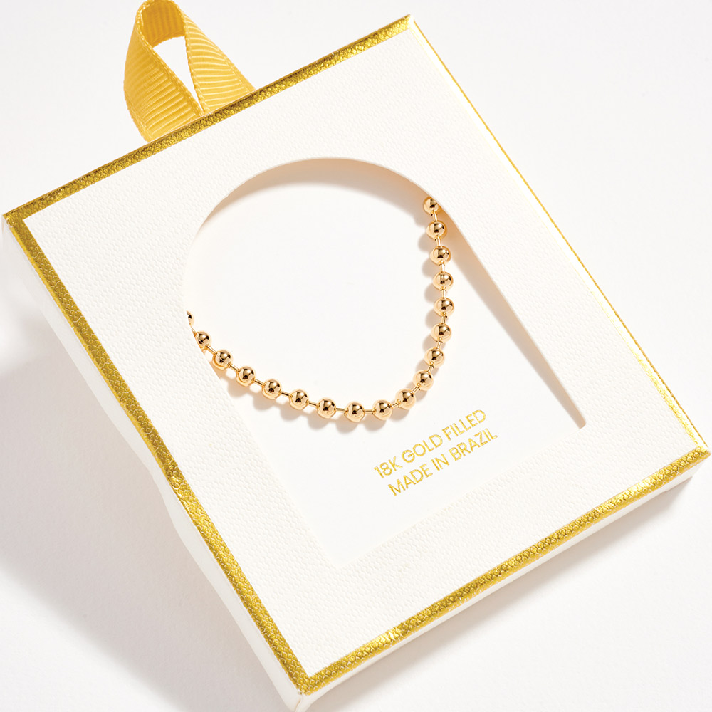 Details • Necklace Size : 17.5" + 1.75" L • Decor Size : 0.2" L • Timeless beaded chain bracelet designed with a clean, rounded silhouette for effortless everyday styling. Ideal for wearing solo or stacking with other bracelets. A versatile accessory that adds subtle elegance to casual outfits, work looks, and special moments, making it a perfect choice for daily wear or thoughtful gifting. • Lead and Nickel Compliant • Hypoallergenic • Gold Filled • Made In Brazil