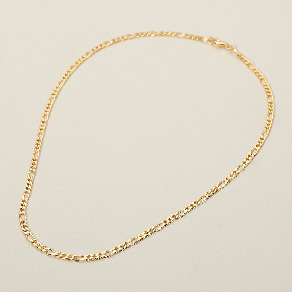 Details • Necklace Size : 16" L • Decor Size : 0.1" L (3mm) • Timeless Figaro chain necklace featuring a sequence of short and elongated links for a refined, versatile style. Its sleek polished finish adds elegance to both casual and formal looks, making it a staple accessory for any jewelry collection. • Gold Filled • Lead and Nickel Compliant • Made In Brazil