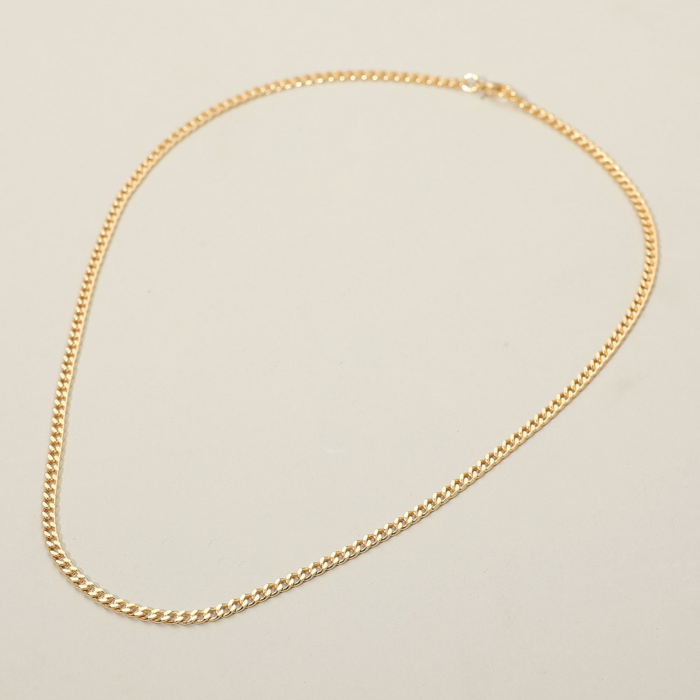 Details • Necklace Size : 18" L • Decor Size : 0.1" L (3mm) • Elegant curb chain necklace showcasing a smooth, reflective finish and uniform linked pattern. Its classic yet modern appeal makes it perfect for layering or wearing solo, offering effortless sophistication for any style or occasion. • Gold Filled • Lead and Nickel Compliant • Made In Brazil
