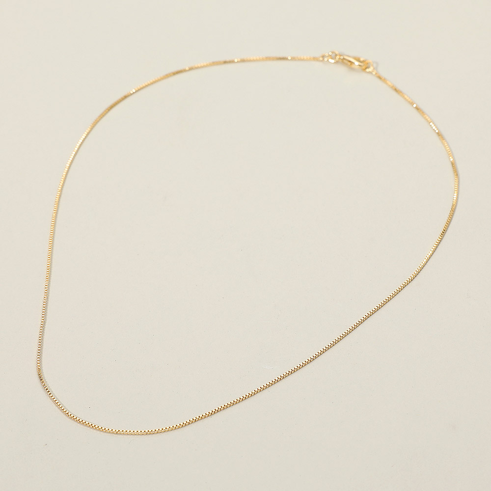 Details • Necklace Size : 16" L • Decor Size : 0.1" L (1mm) • Minimalist box chain necklace showcasing a smooth, fluid design that lies flat against the skin. Its elegant shimmer and refined style make it perfect for everyday wear or layering with statement pieces for a modern, sophisticated look. • Gold Filled • Lead and Nickel Compliant • Made In Brazil