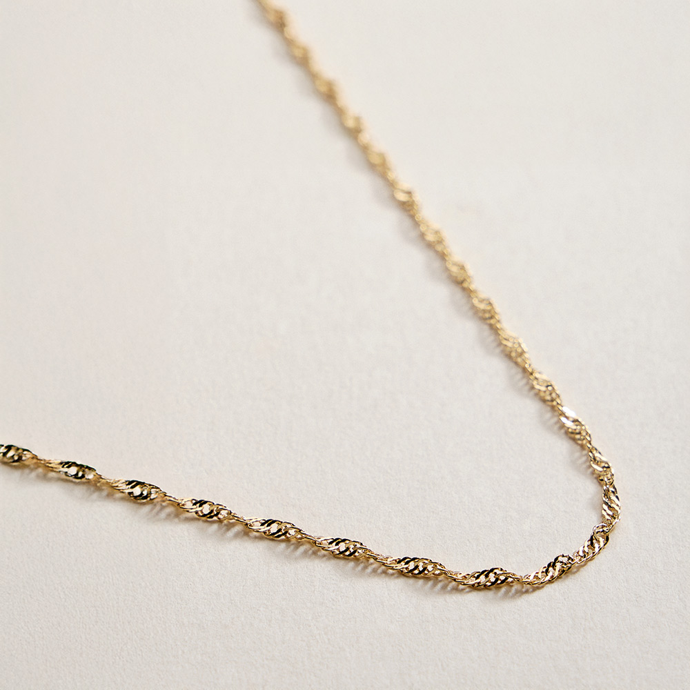Details • Necklace Size : 15.5" + 1.75" L • Decor Size : 0.1" L • Refined textured chain bracelet designed with a subtle twisted silhouette for everyday elegance. Perfect for wearing alone or layering with other bracelets. A versatile accessory that adds polished style to casual looks, work outfits, or special moments, making it ideal for daily wear or gifting. • Gold Filled • Hypoallergenic • Lead and Nickel Compliant • Made In Brazil