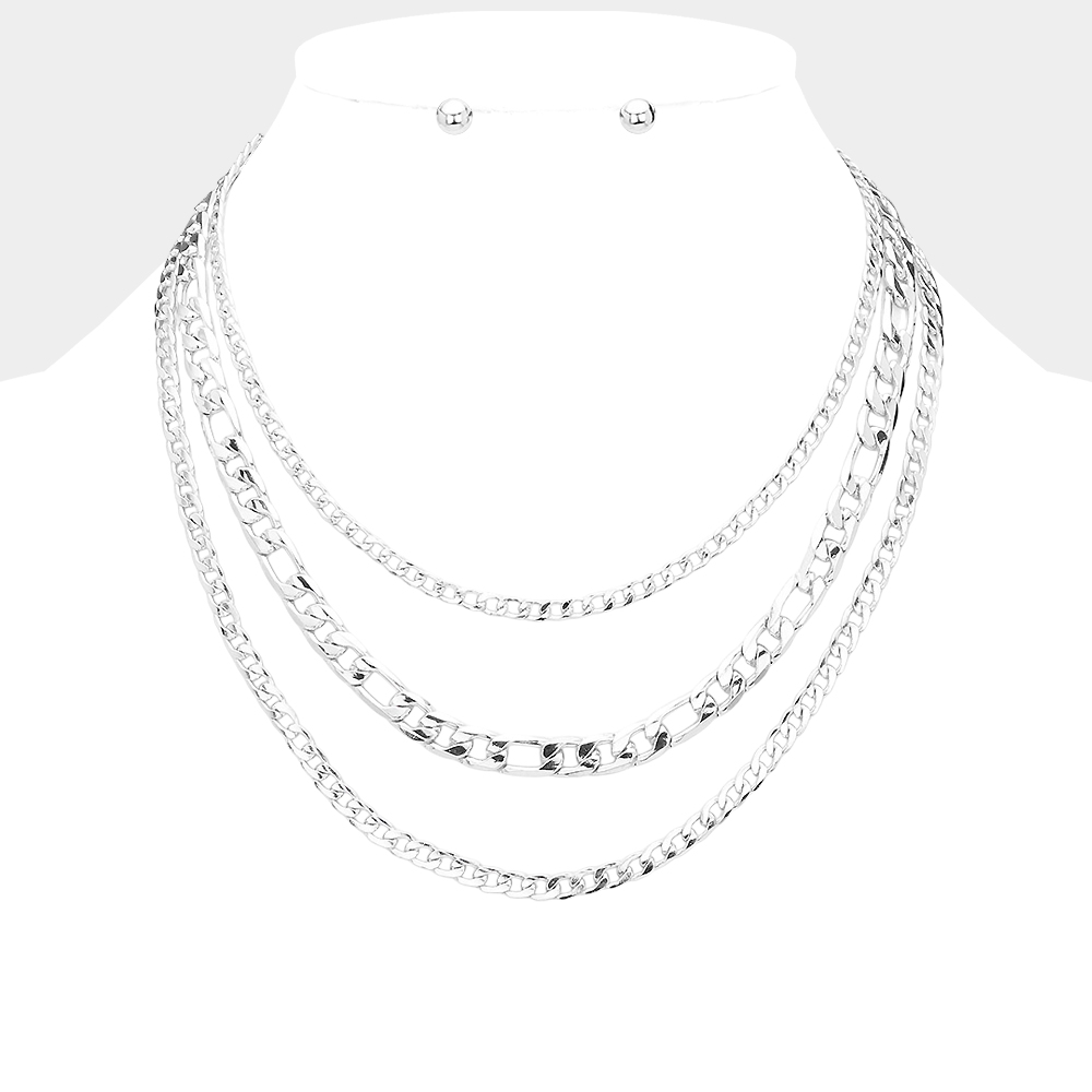 Metal Chain Triple Layered Bib Necklace