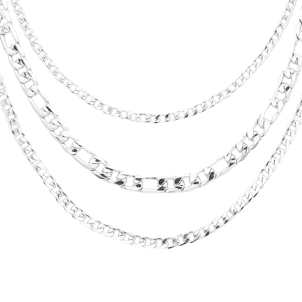 Brass Metal Triple Layered Chain Necklace
