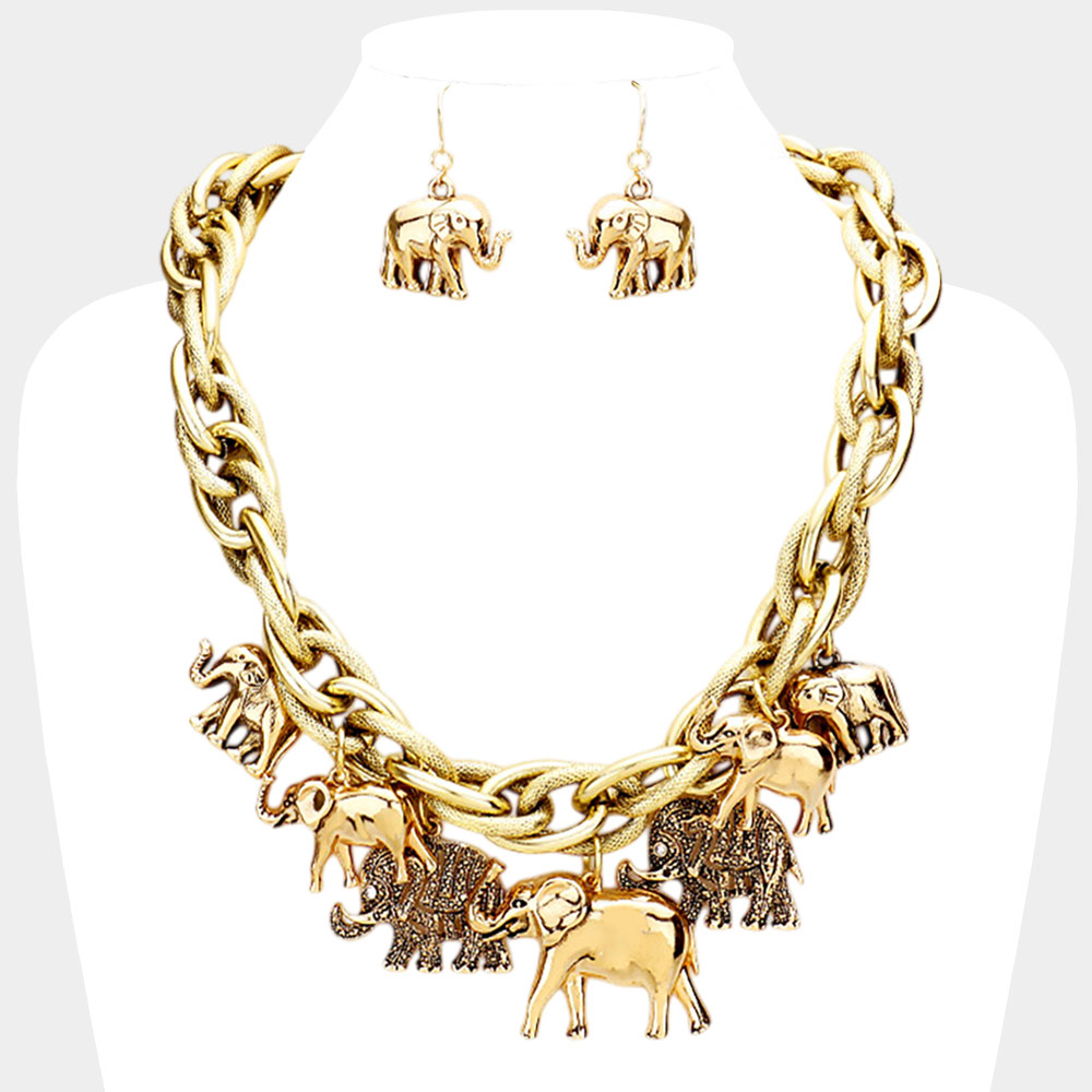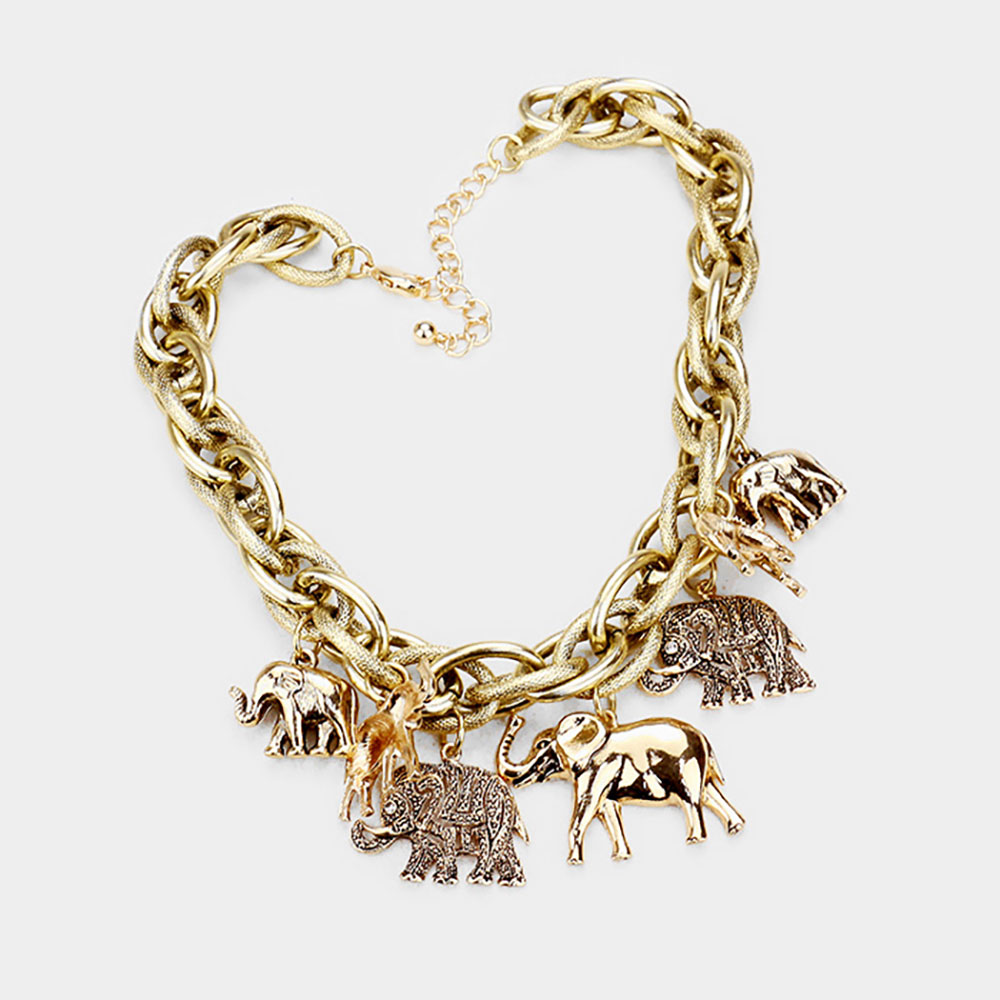 Bold Elephant Charm Station Statement Necklace Bold Elephant Charm Station Statement Necklace Bold Elephant Charm Station Statement Necklace