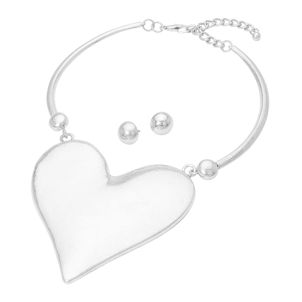 Bold Heart Plate Accent Statement Necklace
