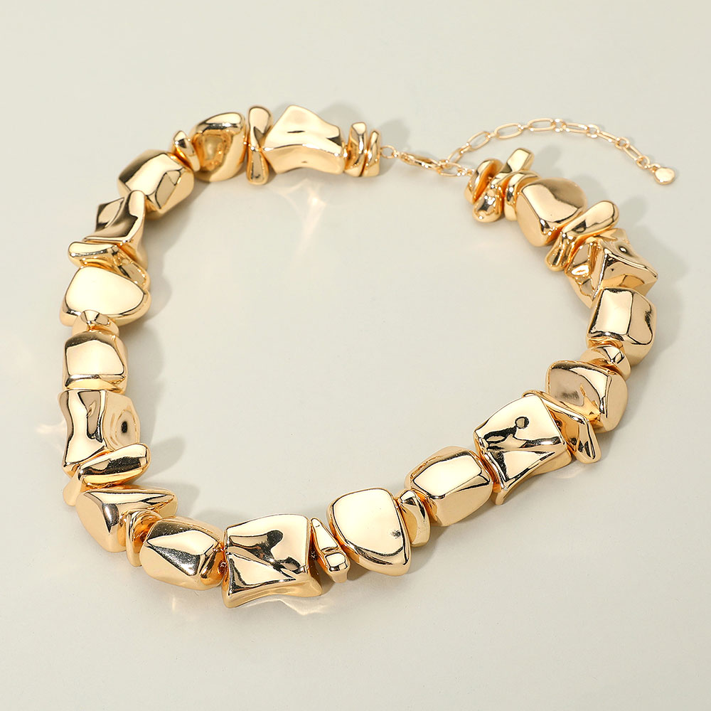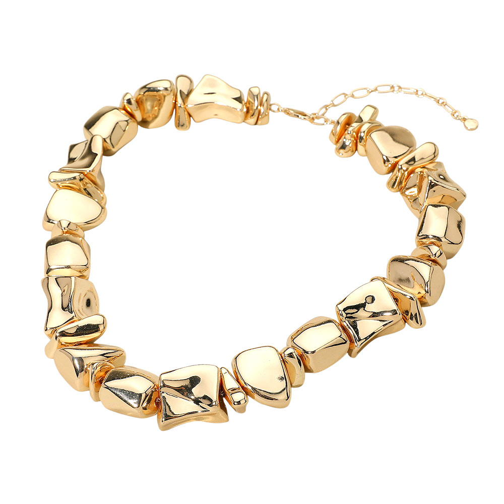 Details • Necklace Size : 15.5" + 3" L • Decor Size : 0.9" L • Elevate your look with this chunky nugget necklace featuring sculpted polished beads and a striking contemporary silhouette. Perfect for special occasions or everyday wear, this statement piece adds a touch of luxury and confidence to any modern outfit. • Lead and Nickel Compliant
