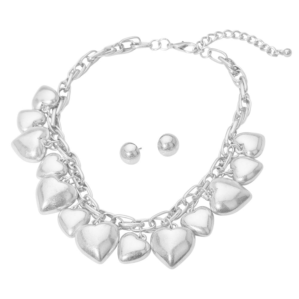 Chunky Puffy Brushed Metal Heart Charm Embellished Necklace Chunky Puffy Brushed Metal Heart Charm Embellished Necklace Chunky Puffy Brushed Metal Heart Charm Embellished Necklace