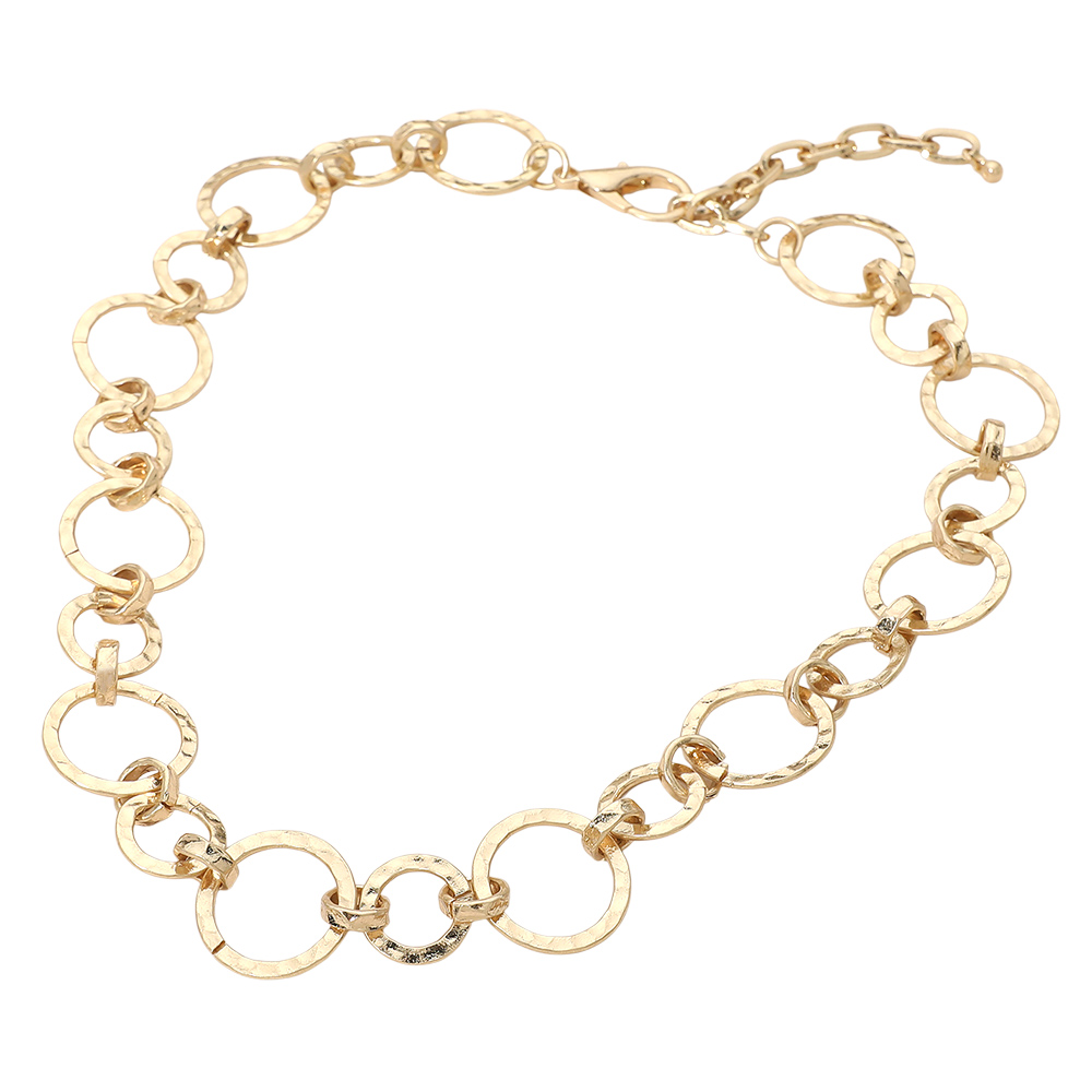 Hammered Metal Ring Link Necklace