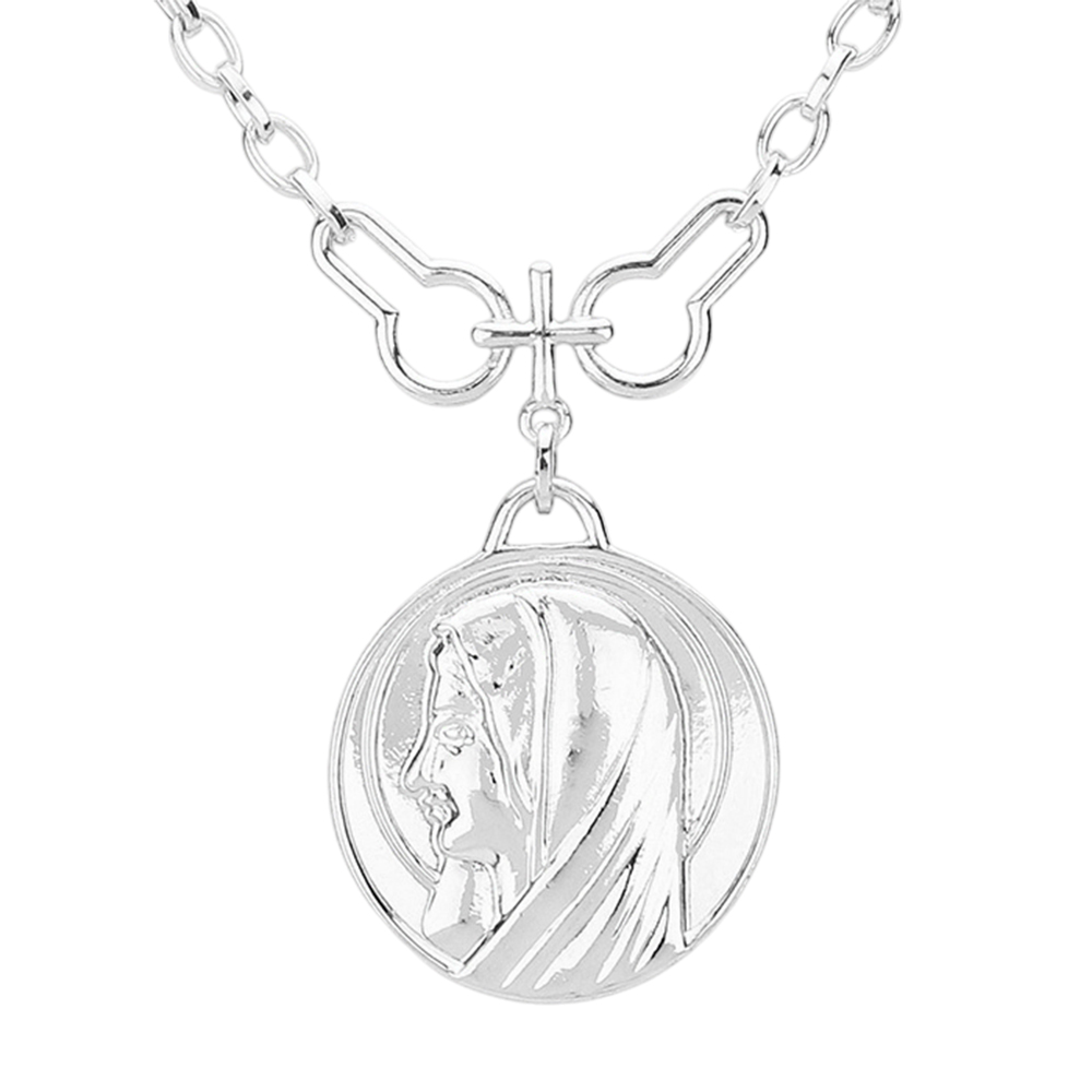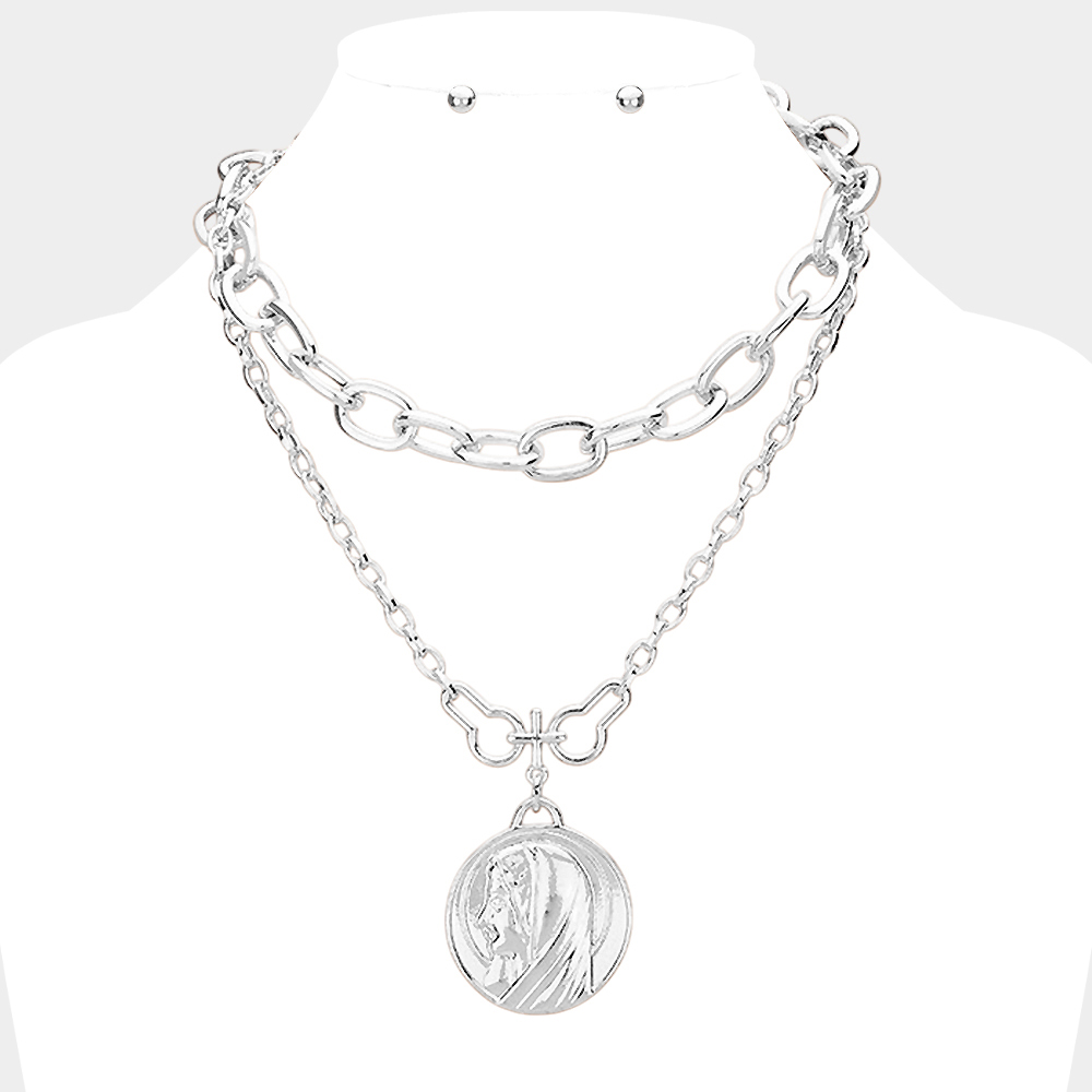 SECRET BOX_Stone Pointed Cross Pendant Bubble Chain Triple Layered Necklace