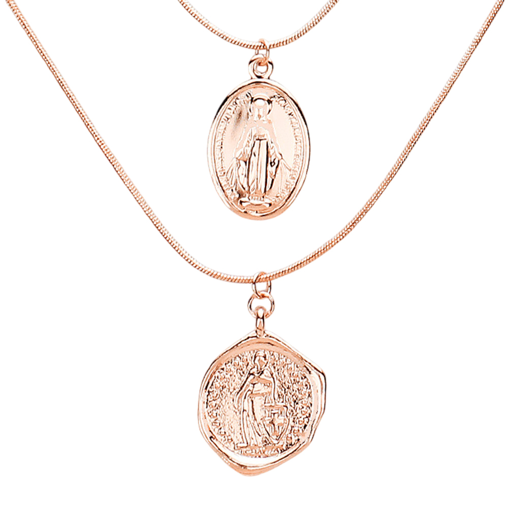 Heart Quatrefoil Bow Cross Religious Medallion Charm Station Pearl Beaded Necklace