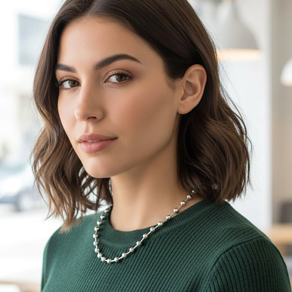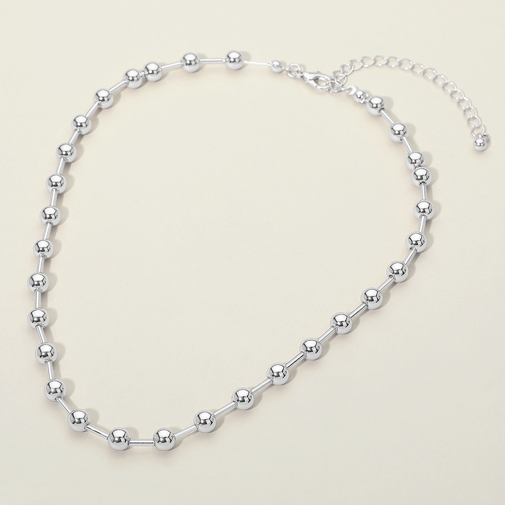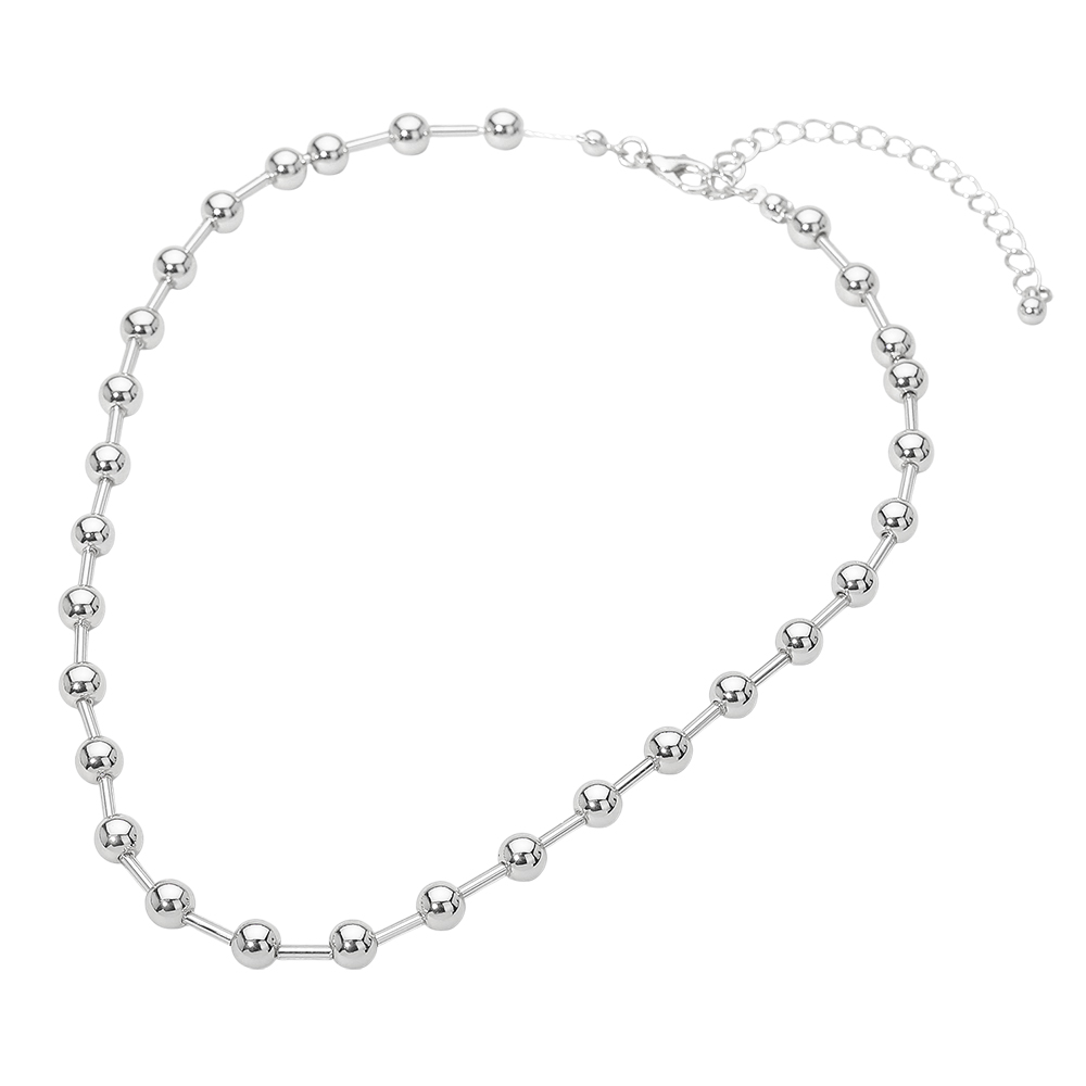 Details • Necklace Size : 15" + 3" L • Decor Size : 0.2" L • Minimalist beaded ball chain necklace designed for effortless everyday styling and easy layering. Features evenly spaced rounded accents along a sleek chain for a clean, modern look that pairs well with pendants or stands alone. A versatile accessory ideal for casual outfits, workwear, and trend-focused jewelry collections. • Lead and Nickel Compliant
