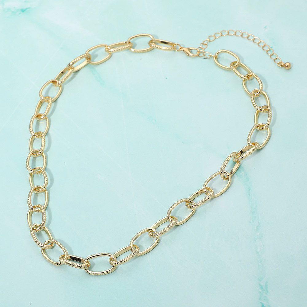 Details • Necklace Size : 17" + 3" L • Decor Size : 0.4" L • Elevate everyday looks with this oval link chain necklace featuring a sleek open-link design and adjustable length for a comfortable fit. Perfect worn solo or layered, it adds modern polish to casual outfits and refined elegance to dressy ensembles. • Lead and Nickel Compliant