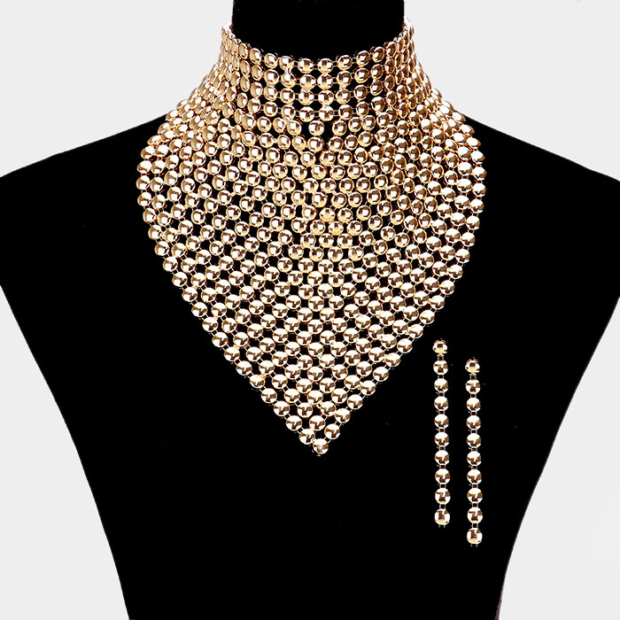 Metal Studded Bib Necklace