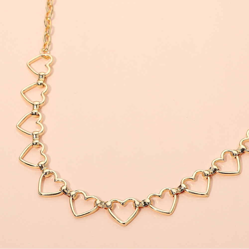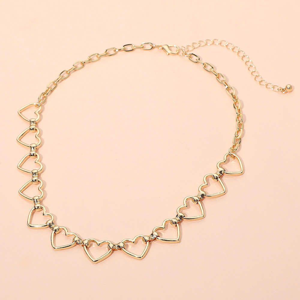 Details • Necklace Size : 15" + 3" L • Decor Size : 0.5" L • Delicate heart link necklace designed with repeating open heart details for a romantic, modern look. Lightweight and easy to layer, this adjustable chain adds soft charm to everyday outfits or special occasions, making it a versatile choice for gift-ready and trend-seeing accessory collections. • Lead and Nickel Compliant