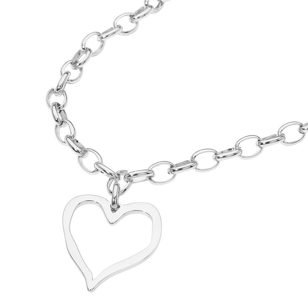 Details • Necklace Size : 17" + 2" L • Pendant Size : 1.25" X 1.5" • Water Resistant • Chic open heart pendant necklace featuring a modern chain link design. This minimal yet elegant accessory adds a romantic and stylish touch to any outfit. Perfect for layering or wearing solo, it makes a thoughtful gift or a versatile piece for everyday wear. • Hypoallergenic • Stainless Steel