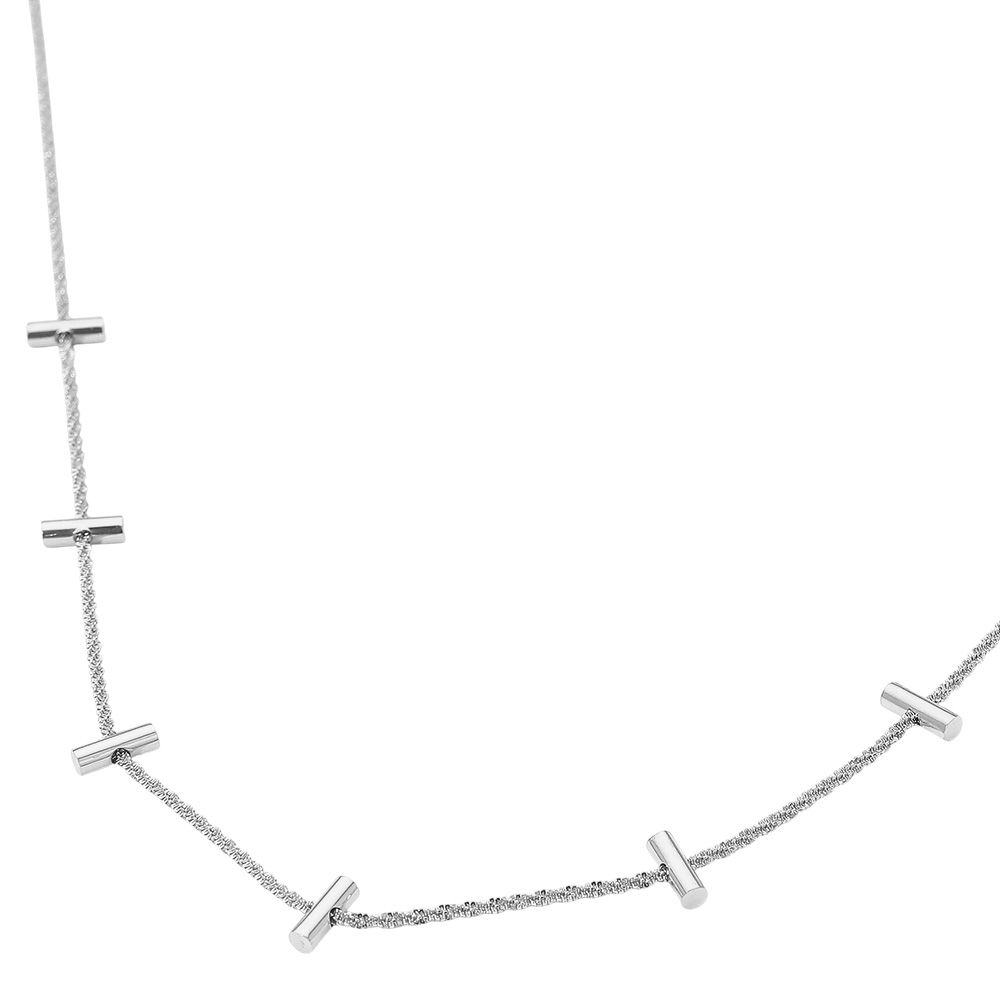 Details • Necklace Size : 16" + 2" L • Decor Size : 0.4" L • Water Resistant • Add subtle sophistication to your look with this modern tube bar necklace, featuring a sleek arrangement of small cylindrical accents on a refined chain. Perfect for both everyday wear and elegant occasions, this versatile piece complements any minimalist jewelry collection. • Hypoallergenic • Stainless Steel