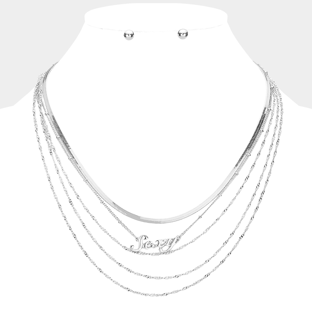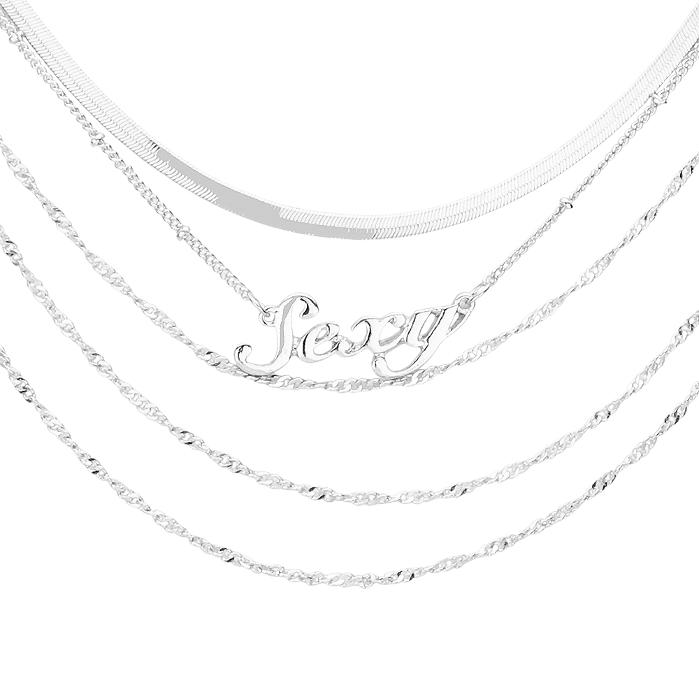 Sexy Pendant Multi Layered Metal Chain Bib Message Necklace